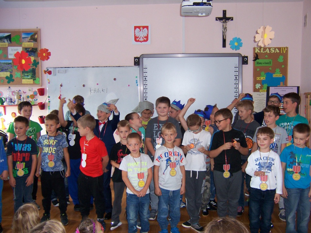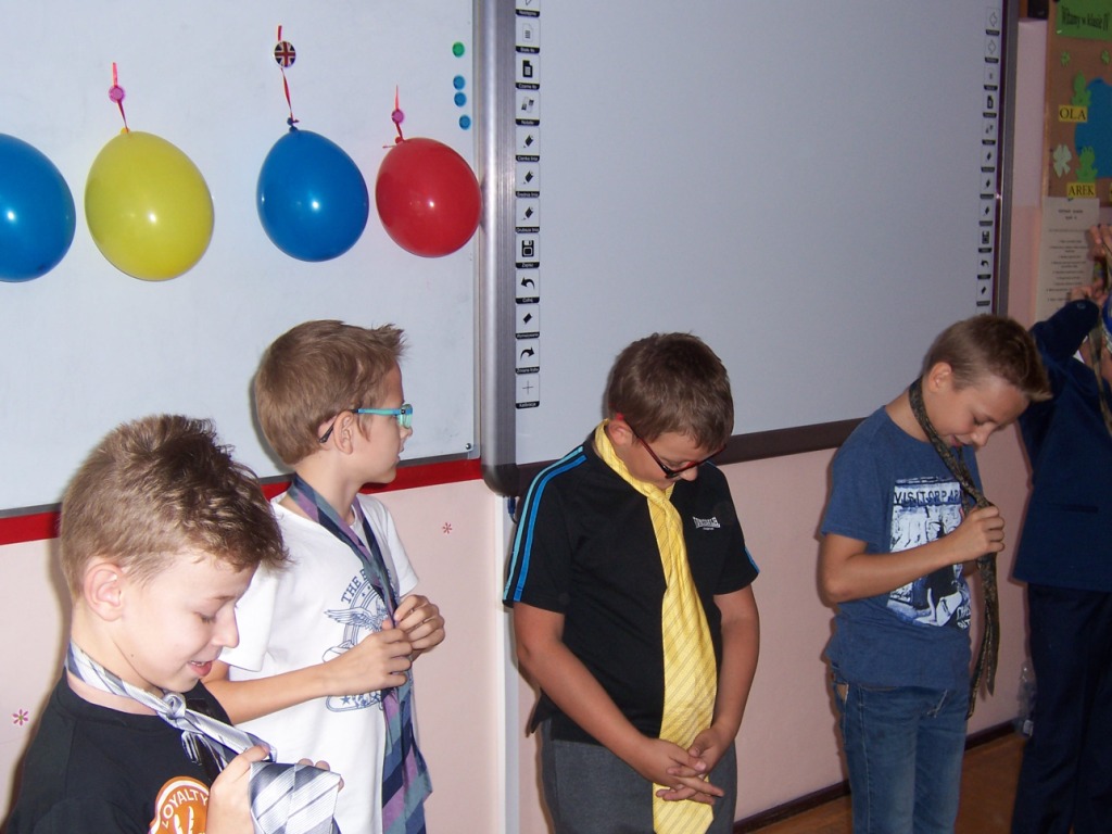 Dzień Chłopaka przypadający co roku 30 września to święto poświęcone męskiej społeczności. Z niecierpliwością czekają na nie w szczególności chłopcy z naszej szkoły. W tym roku z okazji ich święta chłopcy mogli wziąć udział w wielu ciekawych konkurencjach. Było wiele śmiechu i radości. Najwięcej radości sprawiła wszystkim zabawa podczas której chłopcy konkurowali ze sobą robiąc balony z gumy do żucia. Młodsi uczniowie odgadywali zagadki, a także uczyli się wiązać krawaty. Wszyscy chłopcy biorący udział w konkursach odebrali przygotowane specjalnie na te okazję medale "Super Chłopaka". Ten dzień na pewno na długo zostanie w ich pamięci.