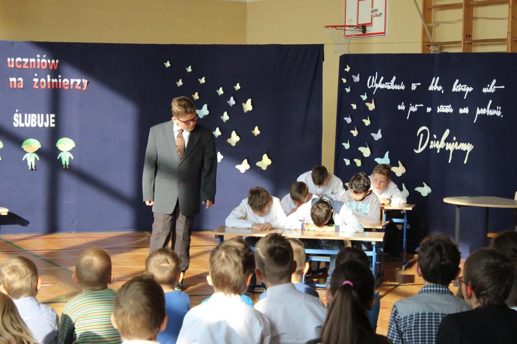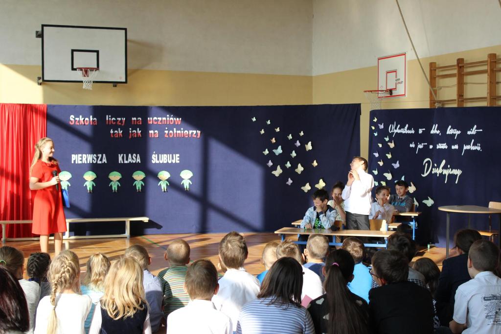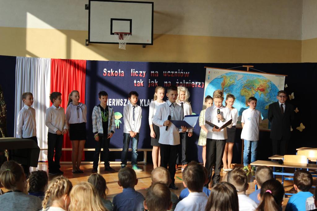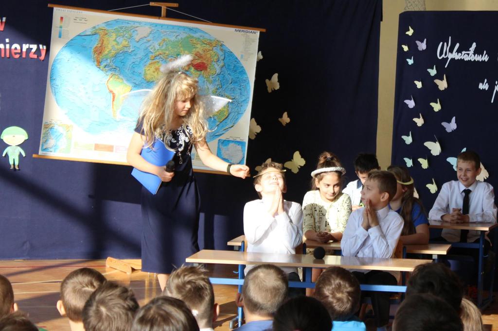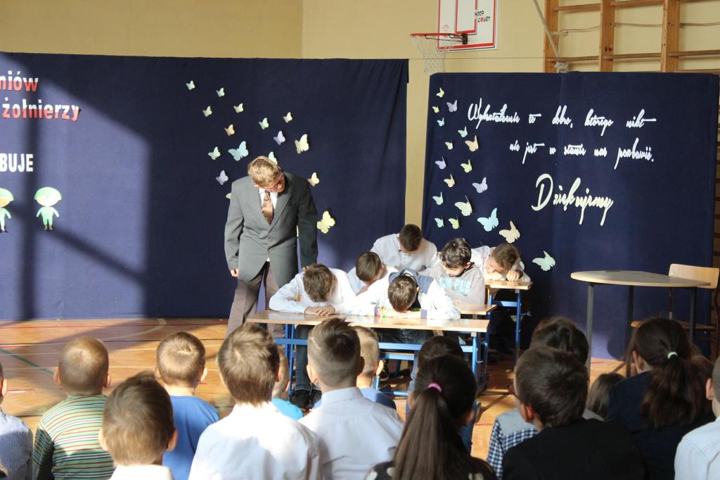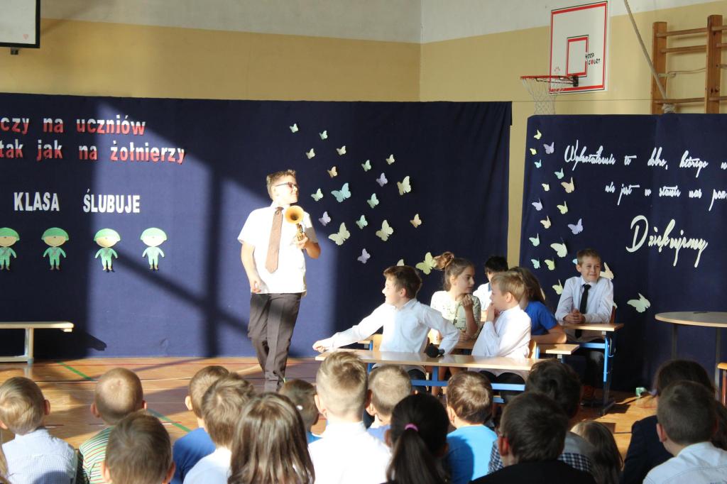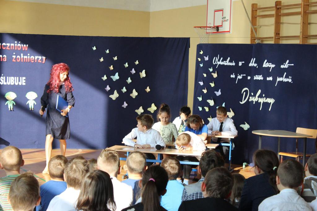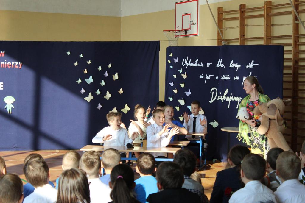 Uczniowie klasy szóstej z okazji Dnia Edukacji Narodowej przygotowali miłą niespodziankę. Kabaret w ich wykonaniu był podziękowaniem Nauczycielom i Pracownikom Szkoły za ich trud i poświęcenie oraz przekazaną wiedzę i umiejętności. Ku zaskoczeniu wszystkich okazało się, ze uczniowie klasy szóstej wykazują się wyjątkowymi zdolnościami aktorskimi. Humorystyczne scenki z życia klasy ubogacone trafnym repertuarem muzycznym, oryginalnymi strojami i rekwizytami, piękną grą młodych aktorów, wywołały na twarzach widzów uśmiech i wzbudziły wiele pięknych emocji. Wdzięczni Nauczyciele i Pracownicy Szkoły z pewnością zapamiętają je na długo.