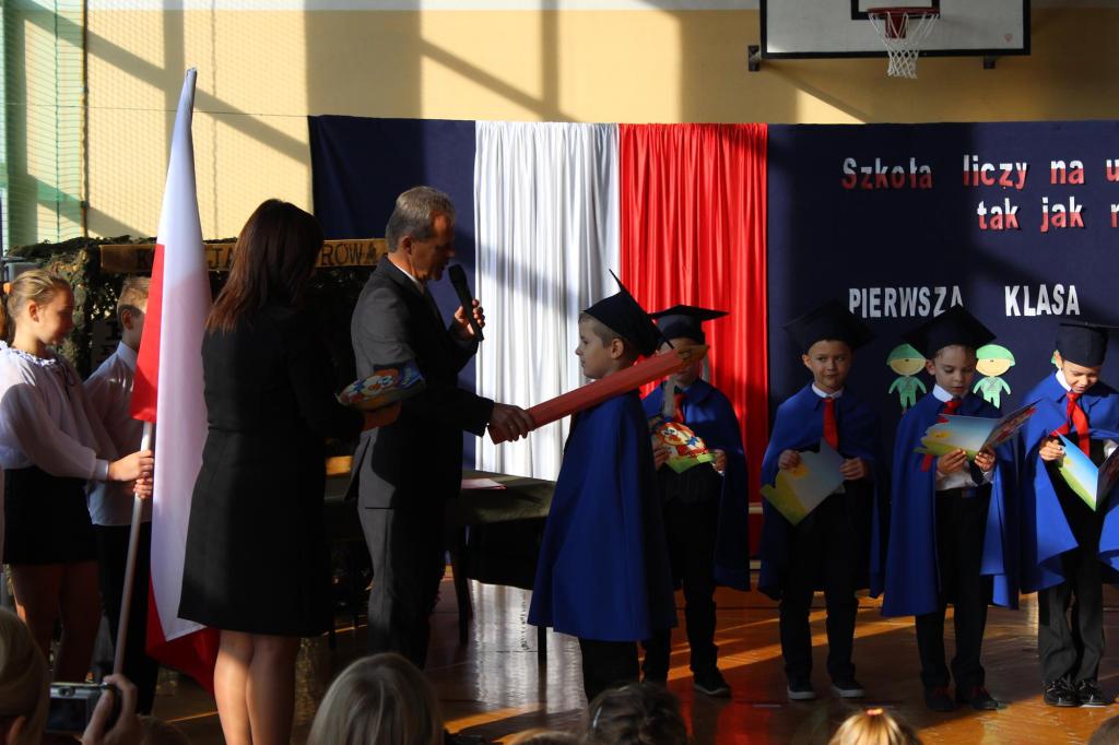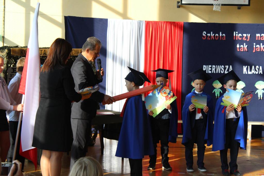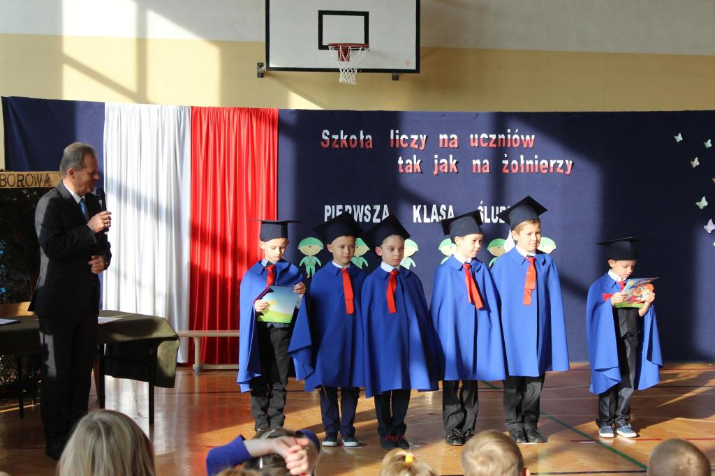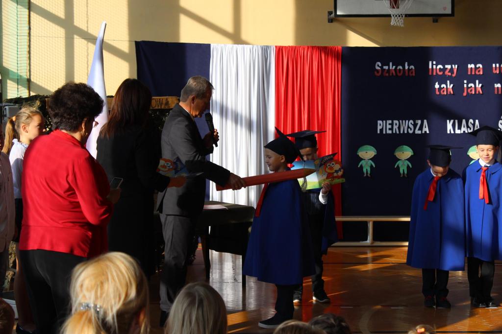 Wreszcie nadszedł ten wyczekiwany przez wszystkich dzień. Rodzice zostali zaproszeni, pierwszoklasiści uroczyście się ubrali i złożyli ślubowanie, a Pan Dyrektor pasował ich na uczniów.