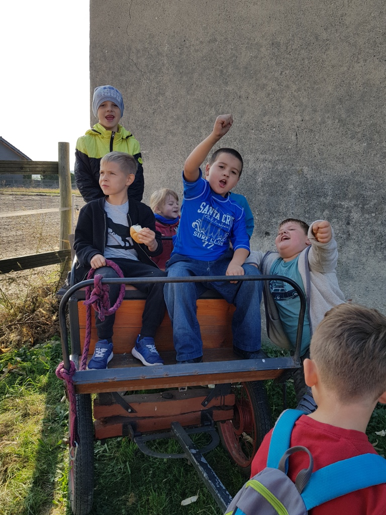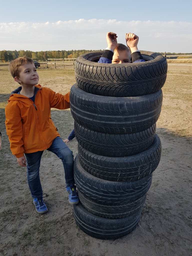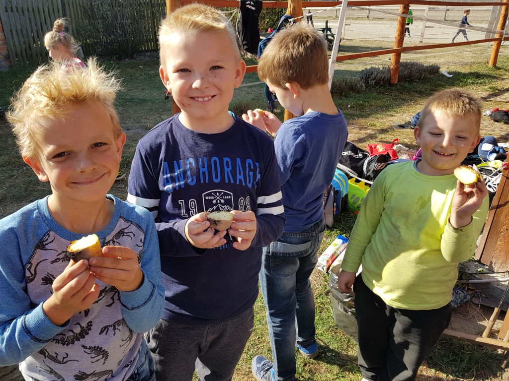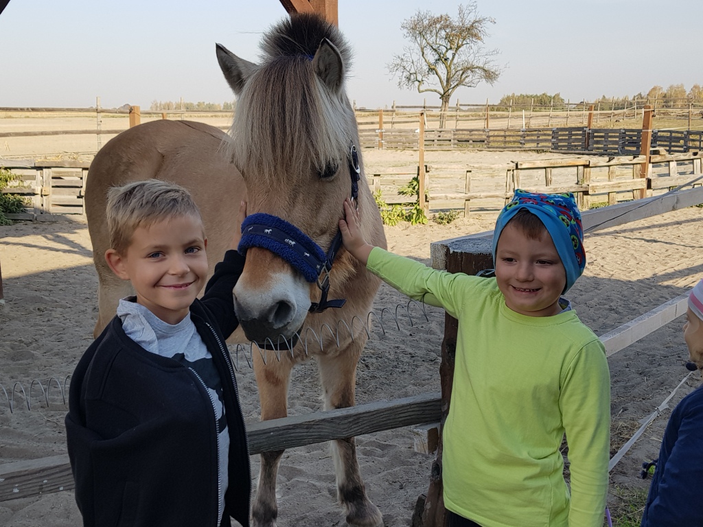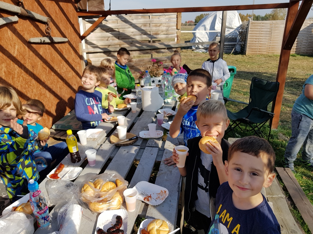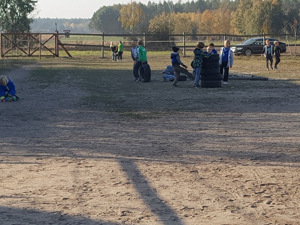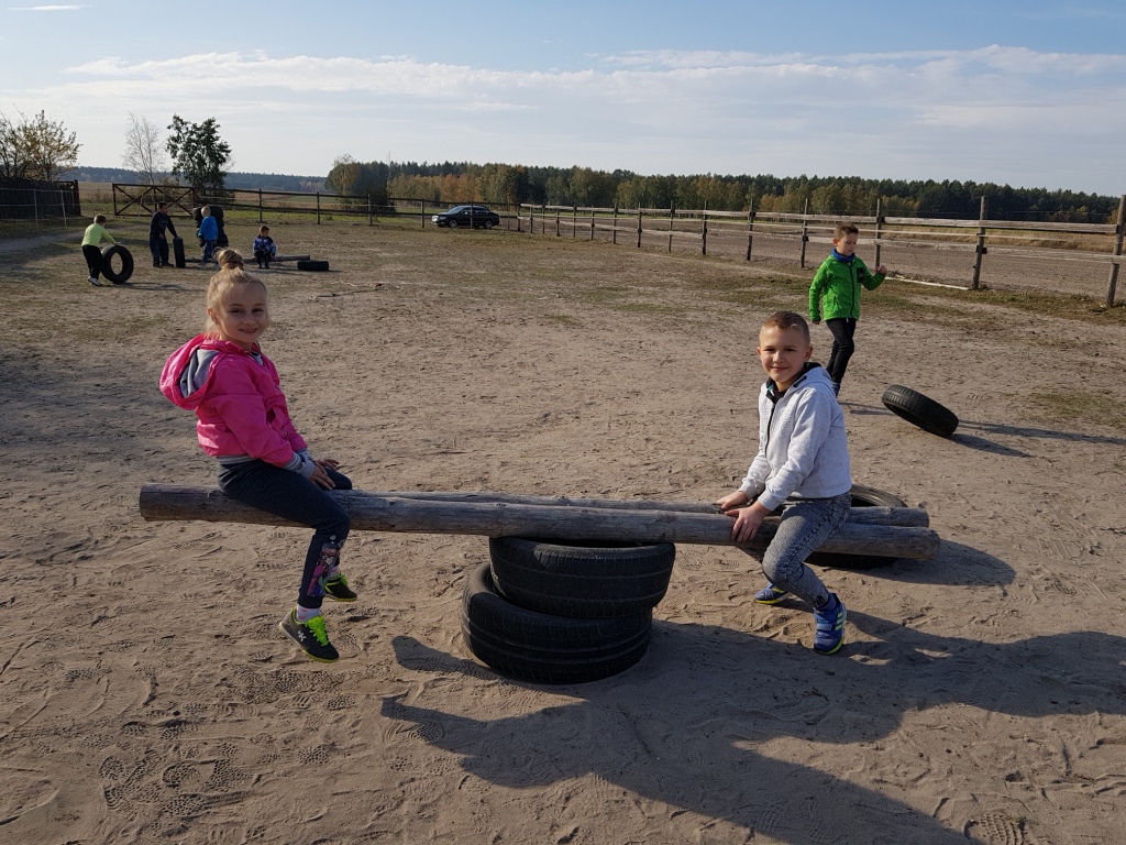 Dnia 16 października z okazji „Święta pieczonego ziemniaka” uczniowie klas I – III wraz z przedszkolakami odwiedzili stadninę koni Green Forest Pani Marty Jabłońskiej w Polskiej Nowej Wsi. Zapoznali się z warunkami hodowli koni, ich pielęgnacją i zwyczajami oraz sami spróbowali konnej jazdy. Dodatkowymi atrakcjami były m.in.: przeciąganie liny, biegi w workach, gra w piłkę nożną, smacznie upieczona kiełbaska oraz inne gry i zabawy na świeżym powietrzu. Na koniec uczniowie zjedli pieczonego ziemniaka. Wycieczka dostarczyła uczniom wielu radości.
