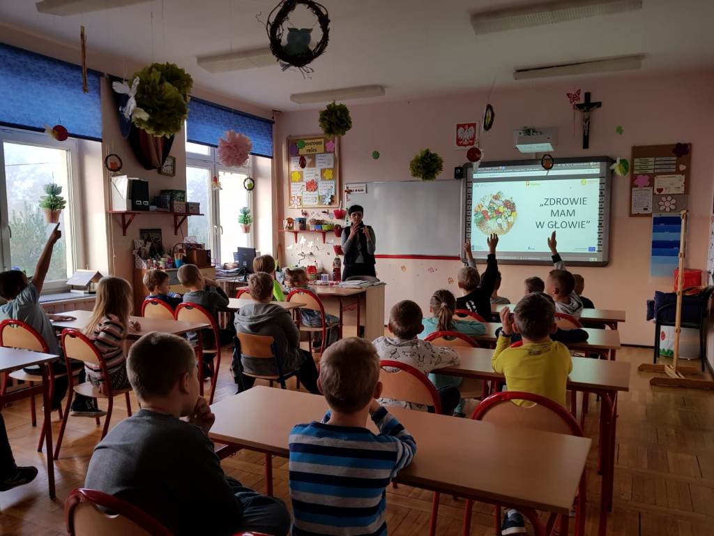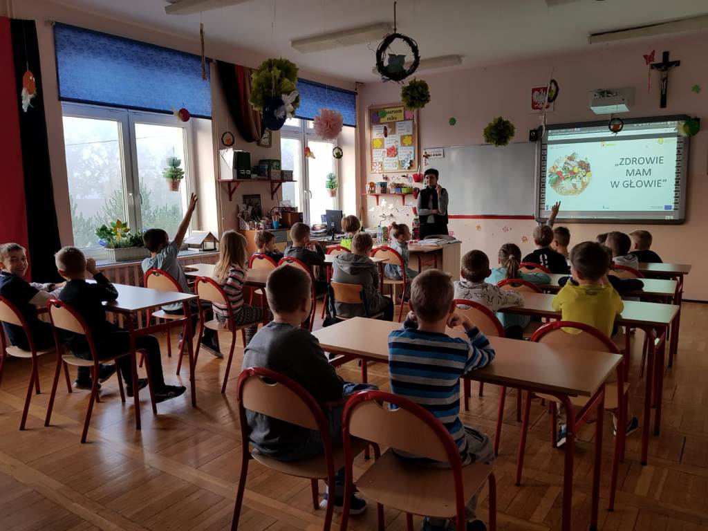 Dnia 22 października uczniowie Publicznej Szkoły Podstawowej w Domecku mieli okazję uczestniczyć w warsztatach zatytułowanych „Zdrowie jest w głowie” z zakresu edukacji żywieniowej, które poprowadziła Pani dietetyk Anna Błaszczyk Czyż. Zajęcia zostały przeprowadzone w trzech grupach: klasy I-III, IV-VI i VII-VIII. Uczniowie mieli okazję zapoznać się z podstawowymi warunkami, jakie trzeba spełnić, aby prowadzić zdrowy tryb życia. Pani dietetyk przedstawiła i omówiła model piramidy żywieniowej, wytłumaczyła jaka jest różnica pomiędzy nektarem, sokiem, a napojem, powiedziała co warto jeść i co powinno się ograniczać. Uświadomiła uczniom jak ważną rolę spełnia aktywność fizyczna w przypadku organizmu i jak szkodliwe jest przedawkowanie soli. Przeprowadzono również eksperyment, podczas którego Pani dietetyk zaprezentowała ile łyżek cukru mieści się w napoju 2 litrowym. Warsztatom towarzyszyło mnóstwo pytań oraz emocji.