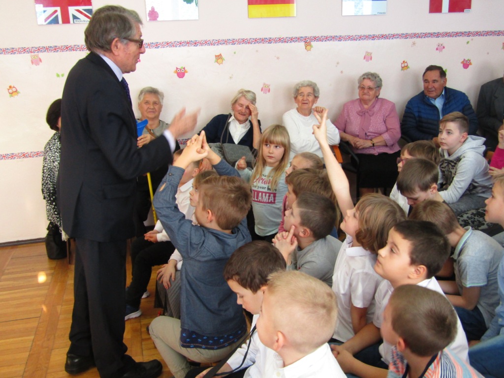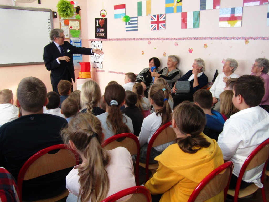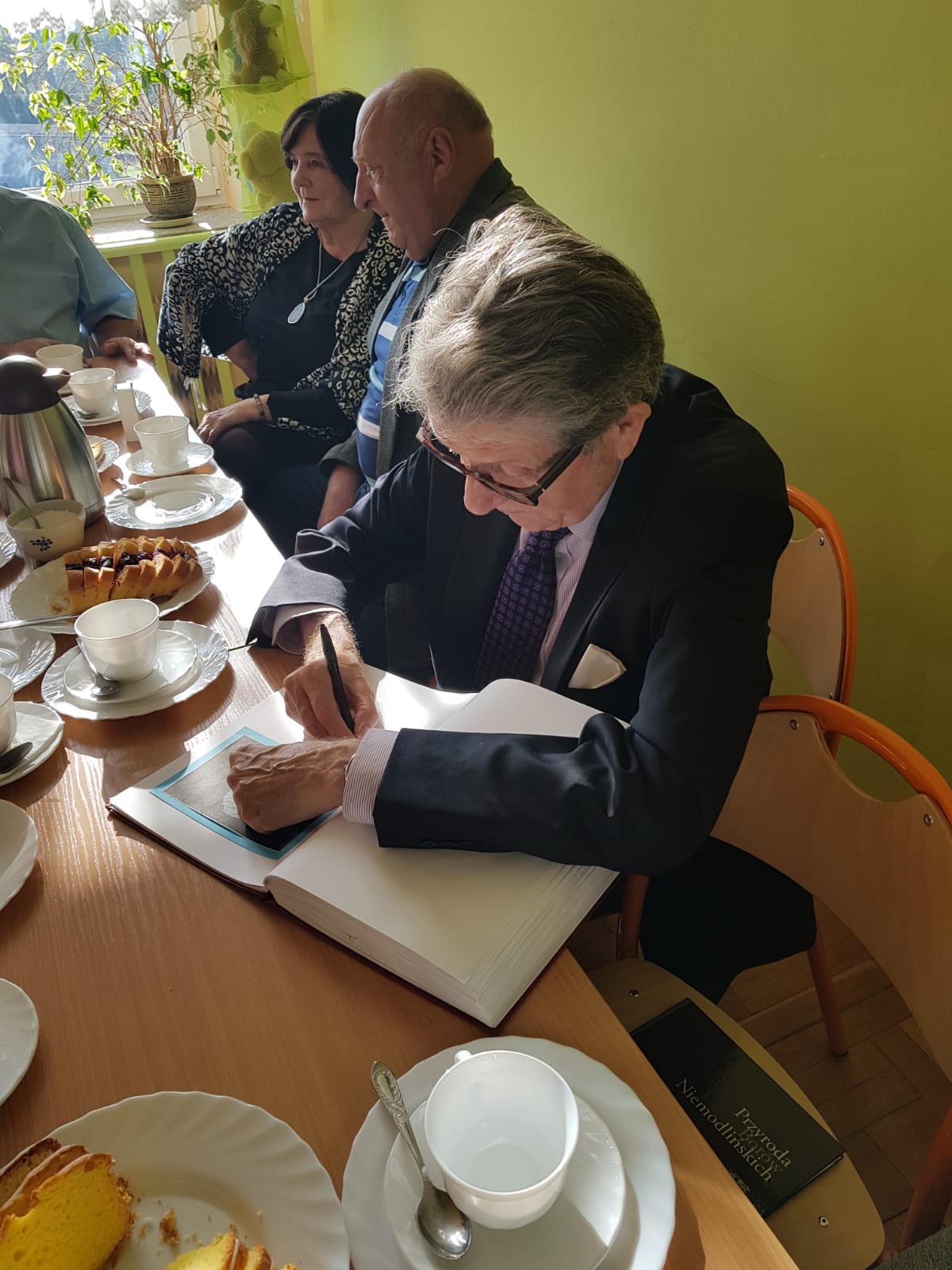 7 listopada 2018r. w ramach obchodów tygodnia niepodległościowego w gminie Komprachcice odbyło się spotkanie z Panem Jerzym Marią Nowakiem - polskim dyplomatą, ambasadorem w Hiszpanii, Andorze, przy NATO i Unii Zachodnioeuropejskiej. Spotkanie i prelekcja na hali OSiR w Komprachcicach poprzedzone zostały wizytą pana ambasadora w naszej szkole albowiem Pan Jerzy Maria Nowak jest byłym mieszkańcem Domecka. Jako dziecko zamieszkiwał wraz z rodziną w budynku ówczesnej szkoły podstawowej, a jego ojciec pełnił wówczas funkcję pierwszego kierownika szkoły. Pan Nowak jest obecnie osobą docenianą i uznawaną w świecie polityki. Pracował na placówkach dyplomatycznych w Dar es Salaam w Buenos Aires i w Nowym Jorku w ramach misji przy ONZ. W 1998 roku został odznaczony Krzyżem Oficerskim Orderu Odrodzenia Polski. Podczas spotkania w naszej szkole obecni były także koledzy i koleżanki pana ambasadora z ławki szkolnej. Było to bardzo wzruszające spotkanie. Pan Nowak bardzo ciekawie opowiadał nam o warunkach nauki jakie panowały w szkole po II wojnie światowej. Chętnie odpowiadał także na nasze pytania, a także wpisał się do naszej kroniki szkolnej. Było to bardzo interesujące spotkanie.