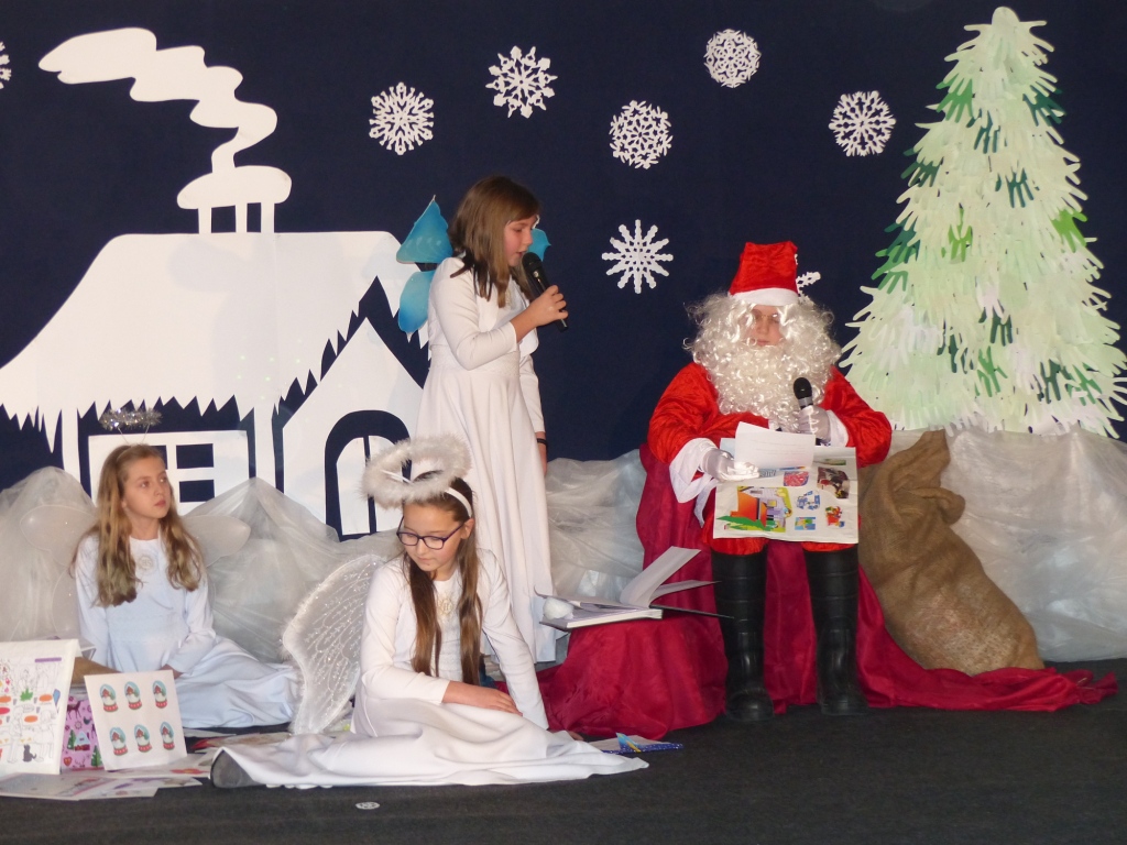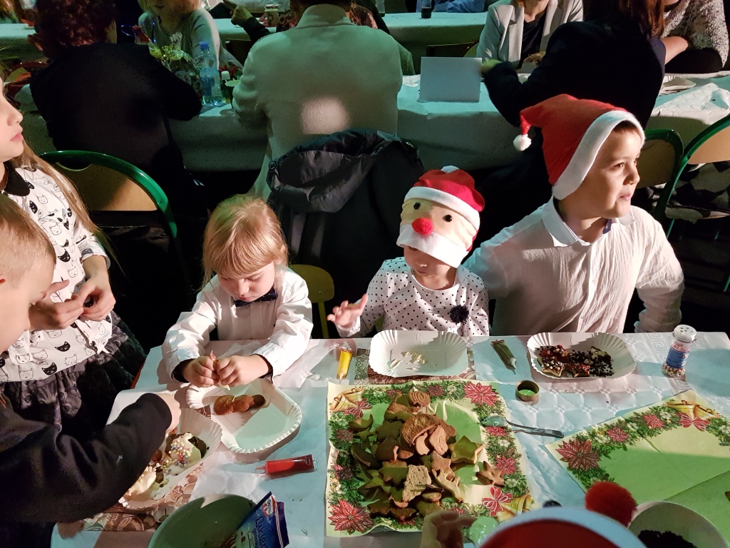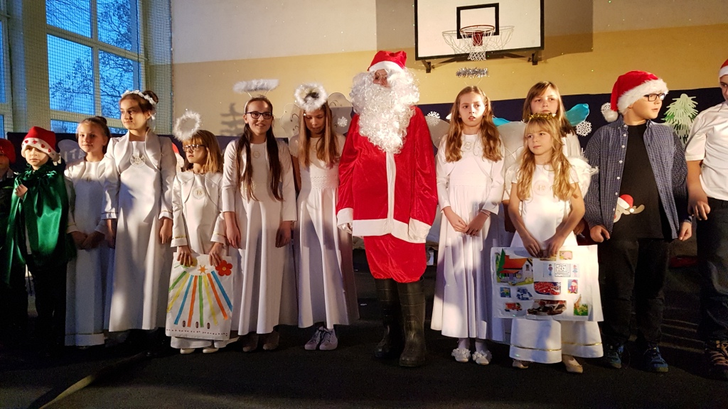 W pierwszą niedzielę adwentu - 2 grudnia odbył się w sali gimnastycznej Publicznej Szkoły Podstawowej w Domecku Jarmark Mikołajkowy połączony ze świątecznym kiermaszem oraz kawiarenką z pysznościami przygotowanymi przez rodziców i uczniów szkoły. Zorganizowanie Jarmarku Mikołajkowego to wspólna inicjatywna nauczycieli, uczniów i rodziców szkoły w Domecku, a także koła Mniejszości Narodowej w Domecku. Kiermasz cieszył się bardzo dużym zainteresowaniem wśród całej społeczności szkolnej i lokalnej. Podczas imprezy, uczestnicy mogli zobaczyć mikołajkowe przedstawienie przygotowane przez uczniów, przedszkolaków i nauczycieli. Jednym z celów zorganizowanego Jarmarku była także integracja społeczności lokalnej i szkolnej oraz prezentacja osiągnięć uczniów dlatego podczas Jarmarku goście mogli podziwiać własnoręcznie wykonane przez dzieci kalendarze adwentowe, a także wysłuchać występów artystycznych uczniów szkoły. Bogate kiermaszowe stoisko ozdób świątecznych przygotowane przez rodziców cieszyło się również dużym zainteresowaniem. Dla dzieci zorganizowane zostały warsztaty ozdabiania pierników i tworzenia ozdób choinkowych. A duże arkusze z zimowymi kolorowankami, które zawisły na ścianach, okazały się, być wyjątkową atrakcją, szczególnie dla najmłodszych uczestników imprezy. Po oficjalnej części Jarmarku na salę gimnastyczną szkoły przybył Święty Mikołaj, który do wspólnej zabawy zaprosił zarówno młodszych, jak i starszych uczestników imprezy. Mikołaj częstował dzieci batonikami, można także było zrobić sobie z nim zdjęcie czy porozmawiać. Wszystkie występy i pokazy podczas Jarmarku Mikołajkowego spotkały się z dużym zainteresowaniem i nagradzano je głośnymi owacjami. Kiermasz okazał się wspaniałym wydarzeniem zorganizowanym w murach Publicznej Szkoły Podstawowej w Domecku. Mamy nadzieję, że następnym razem będzie nas jeszcze więcej.