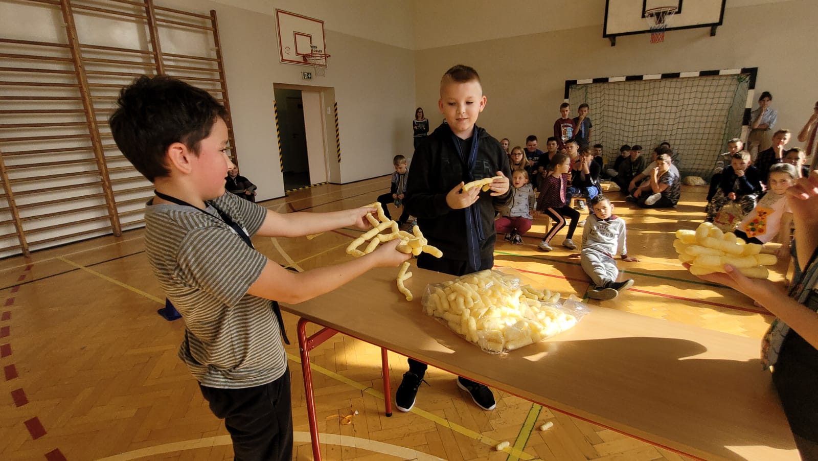 Dzień 30 września to według kalendarza bardzo ważny dzień dla całej męskiej społeczności. Jest to też dzień, który bardzo chętnie obchodzi się w szkołach. W tym dniu dziewczyny przygotowują dla swoich kolegów drobne upominki lub inne drobiazgi z okazji Dnia Chłopaka. Również w naszej szkole w tym dniu było głośno, wesoło i kolorowo. Bardzo wiele osób przyszło w tym dniu przybranych w krawat lub muszkę, co zwalniało ich z niezapowiedzianych kartkówek i odpowiedzi ustnych na lekcji. Uczniowie z klas I-III chętnie wzięli udział w konkursie na "najpiękniejszy krawat wykonany z ciekawych materiałów". Krawaty wykonane w domu przez dzieci z pomocą rodziców były wyjątkowo kolorowe, wykonane z rożnych materiałów oraz ciekawie udekorowane. Na 4 godzinie lekcyjnej na sali gimnastycznej chłopcy z klas IV-VIII wzięli udział w zabawach przygotowanych przez Samorząd Uczniowski. A były to: przechodzenie pod linką, układanie budowli z chrupek kukurydzianych, zrobienie balonu z gumy balonowej, slalom z jajkiem i przebicie balonu poprzez siad na nim. Wspólne świętowanie wpłynęło na pozytywną atmosferę wśród naszych uczniów. Było bardzo wesoło i sympatycznie. Podczas apelu dziewczyny z klasy VIII złożyły także wszystkim chłopakom ułożone życzenia i wręczyły słodkie upominki. Dzień Chłopaka w tym roku szkolnym możemy zaliczyć do bardzo udanych imprez w naszej szkole!