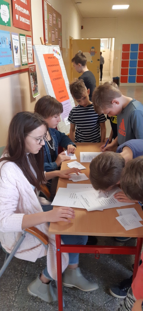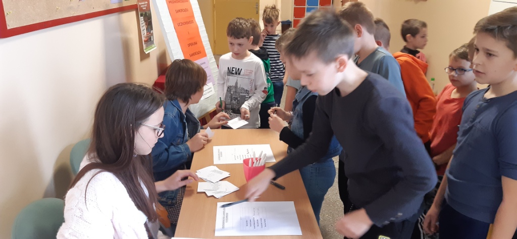 13 października odbyły się w naszej szkole demokratyczne wybory do Samorządu Uczniowskiego. Klasy IV, VI, VII oraz VIII wytypowały swoich kandydatów na przewodniczącego społeczności uczniowskiej. Wybory poprzedzone były kampanią wyborczą, w trakcie której kandydaci prezentowali swoje programy. Uprawnieni do głosowania byli uczniowie klas II - VIII naszej szkoły. Każdy uczeń mógł oddać jeden głos na swojego kandydata oraz jeden głos na opiekuna samorządu uczniowskiego wśród listy z imionami i nazwiskami nauczycieli. Nad prawidłowym przebiegiem głosowania czuwała komisja wyborcza złożona z uczniów klasy VIII. Wybory odbyły się w zgodnie z zasadami fair play oraz z zachowaniem szacunku do rywali. W wyniku wyborów wyłoniono skład samorządu uczniowskiego w roku szkolnym 2021/22: