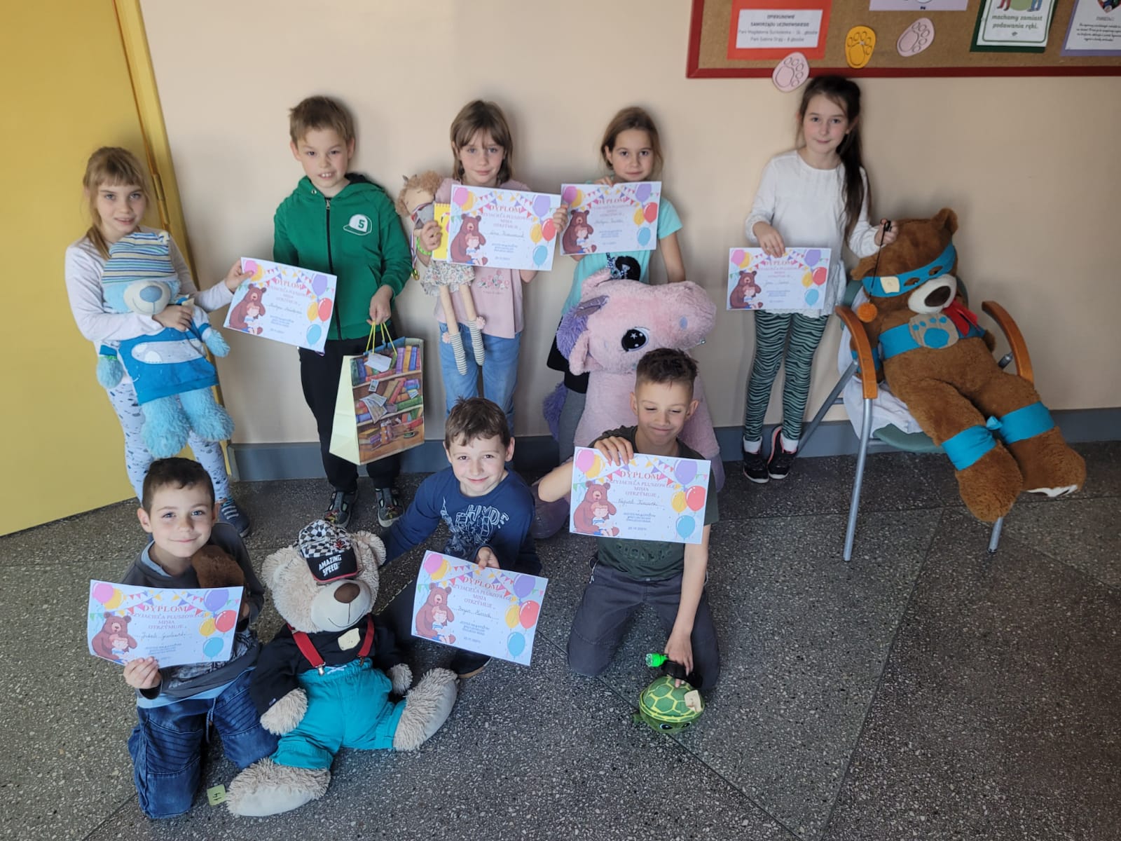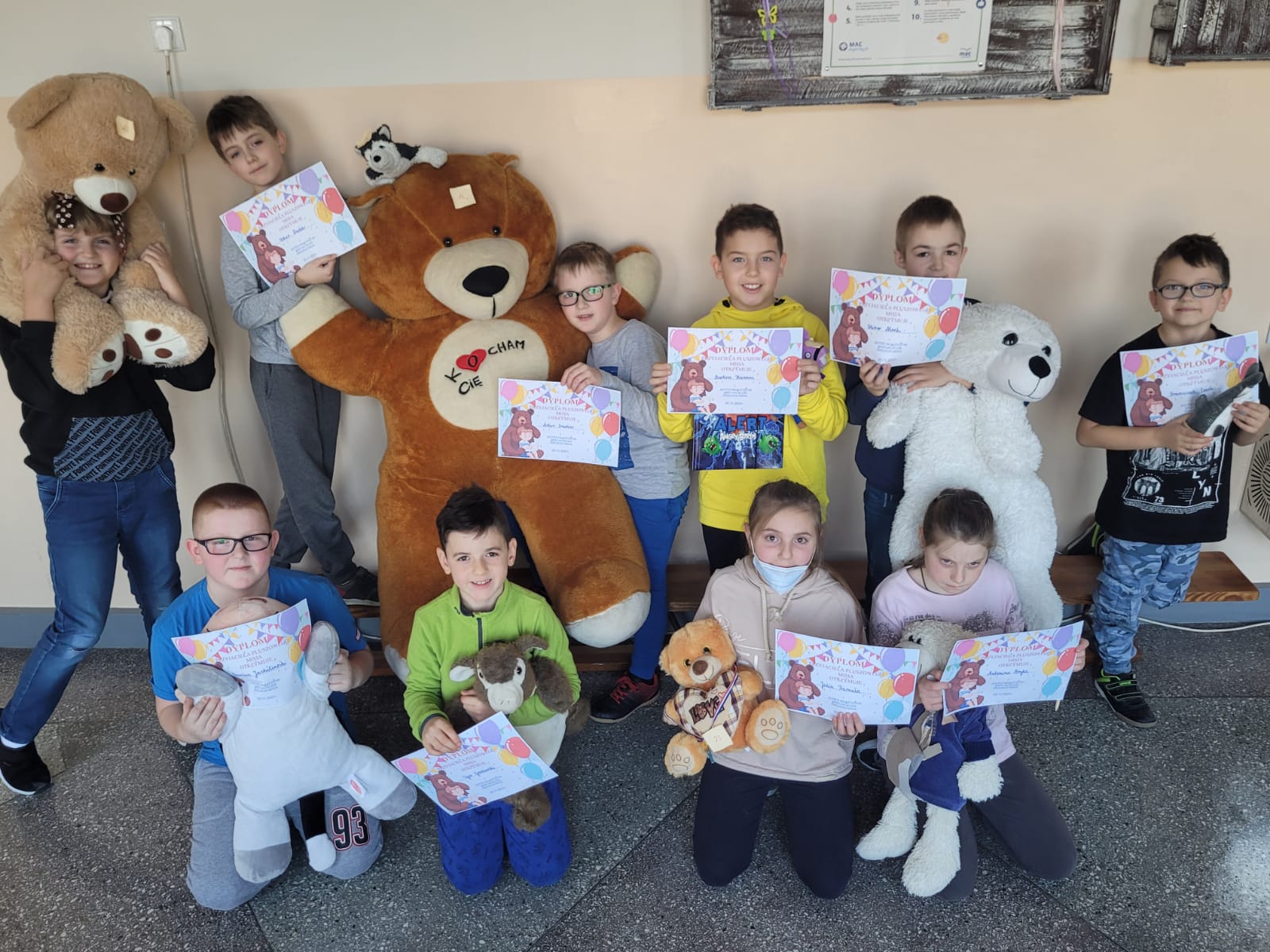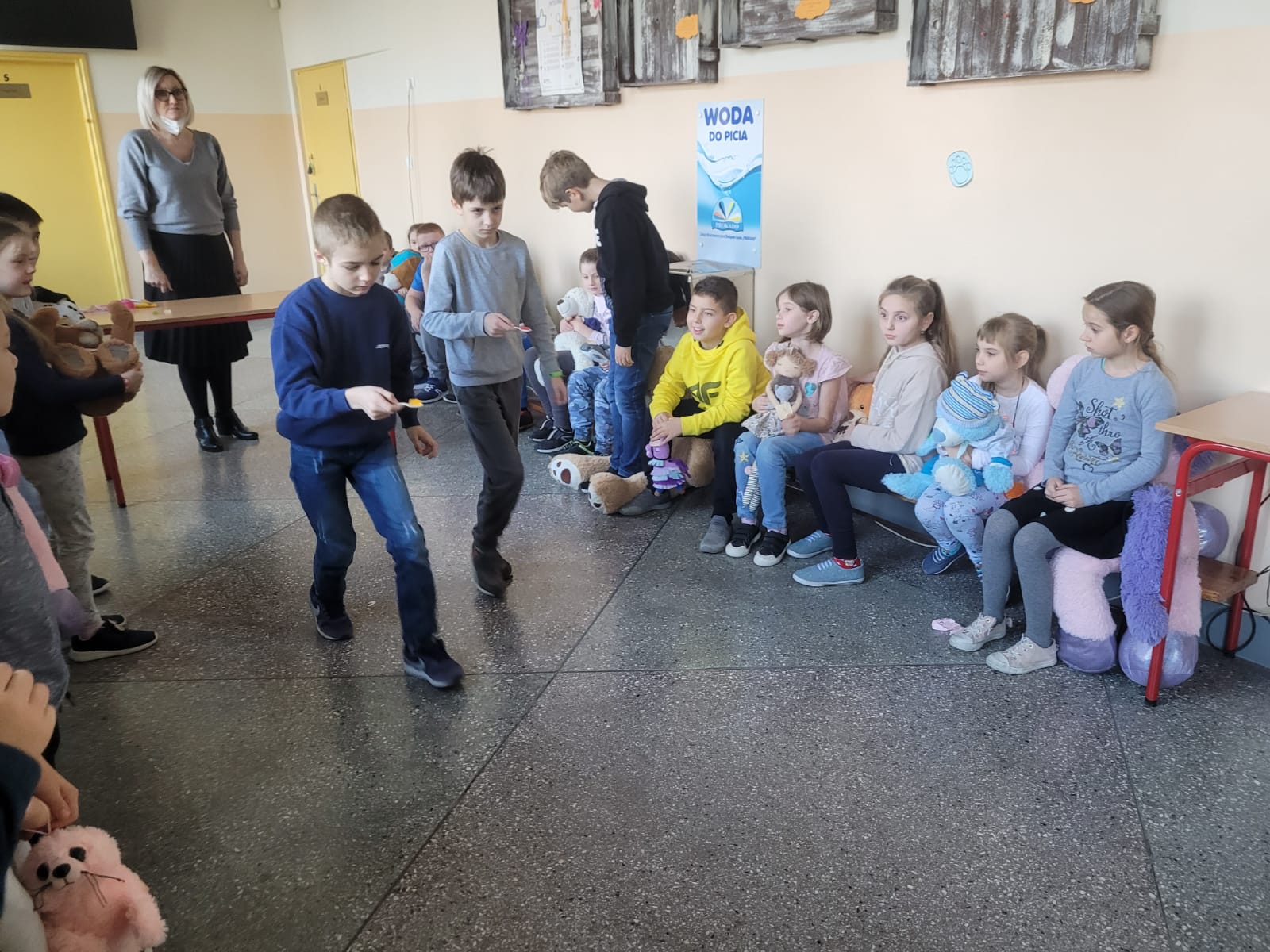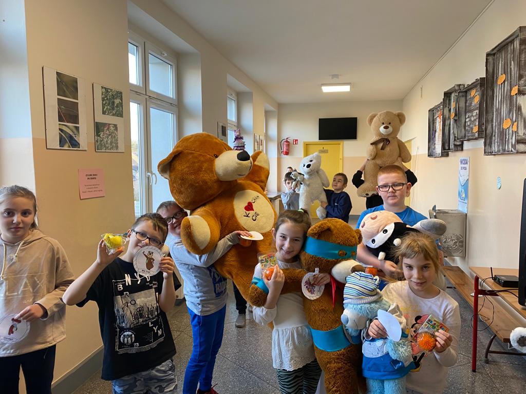 25 listopada w naszej szkole obchodziliśmy Światowy Dzień Pluszowego Misia. Cała uroczystość zorganizowana była przez Samorząd Uczniowski, a uświetniły ją przede wszystkim przyniesione przez uczniów z domu pluszowe maskotki. Każdy z nas miał w dzieciństwie bądź ciągle ma swojego ukochanego misia. Duży czy mały, kolorowy czy biały, wszystkie misie są uwielbiane przez dzieci. Ta wyjątkowa zabawka ma już wiele i wciąż cieszy się ogromną popularnością. Z okazji dnia misia na uczniów klas I-III czekało w szkole wiele atrakcji. W czasie przerw między lekcjami odbywały się różne konkurencje. Dzieci odgadywały zagadki związane z pluszowym misiem i brały udział w konkurencjach sportowych. Dzień ten był świetną okazją do kształtowania właściwych relacji i przyjaznej atmosfery wśród uczniów naszej społeczności szkolnej.