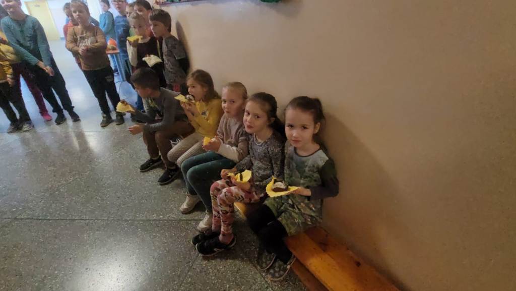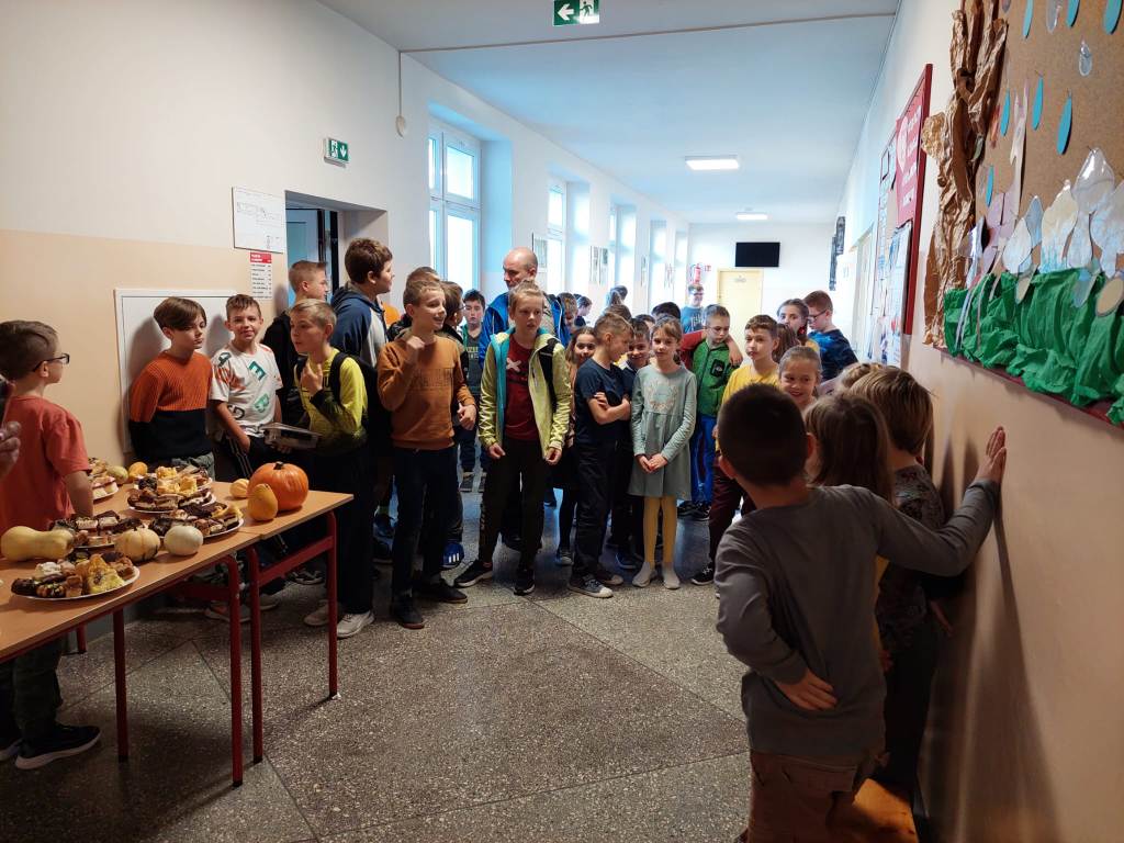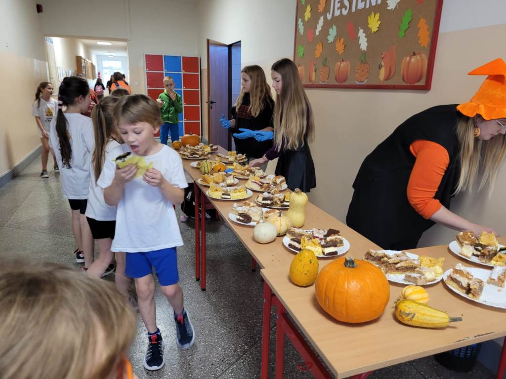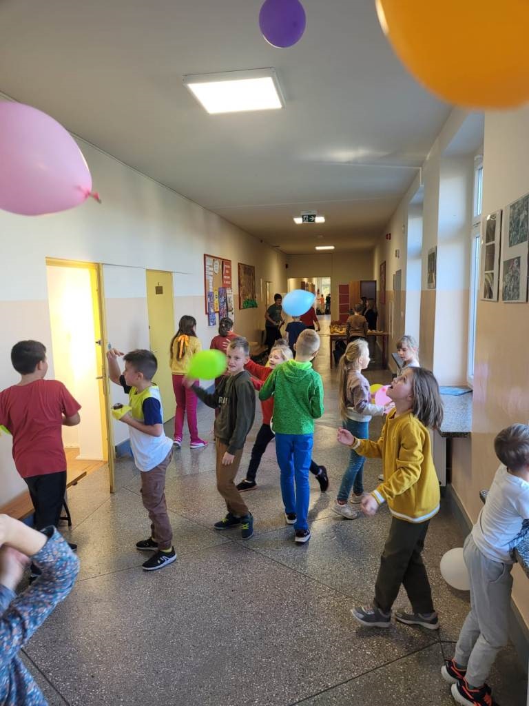 W czasie przerw międzylekcyjnych na każdego z uczniów czekał słodki poczęstunek przygotowany przez rodziców każdej z klas. Jednak przed zjedzeniem smakołyków uczniowie mieli za zadanie wykazać się grupową kreatywnością. Ich zadaniem było wspólnie zaśpiewać piosenkę lub powiedzieć dowolnie wiersz. Warunek był jeden - działamy razem!