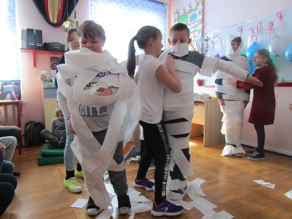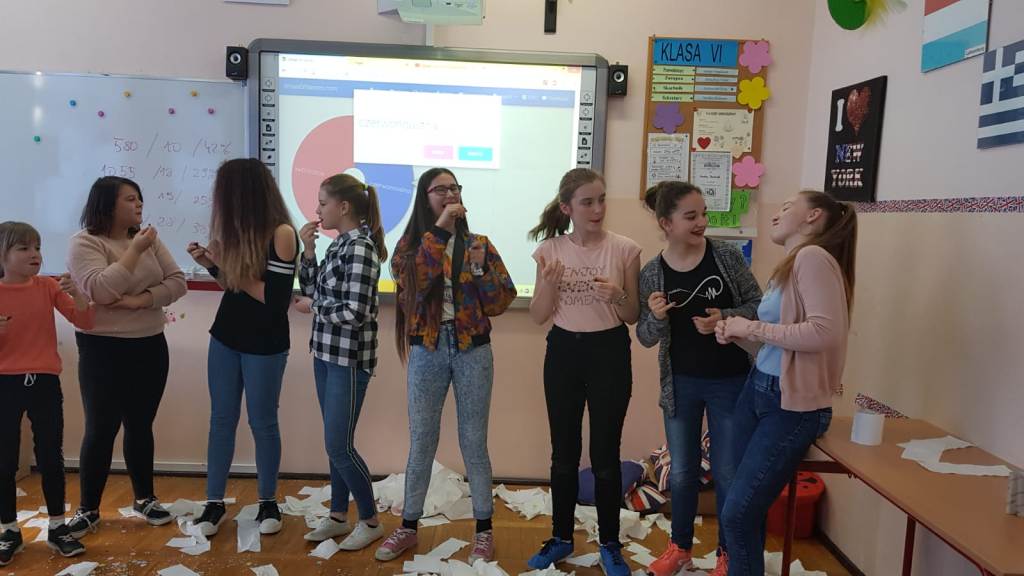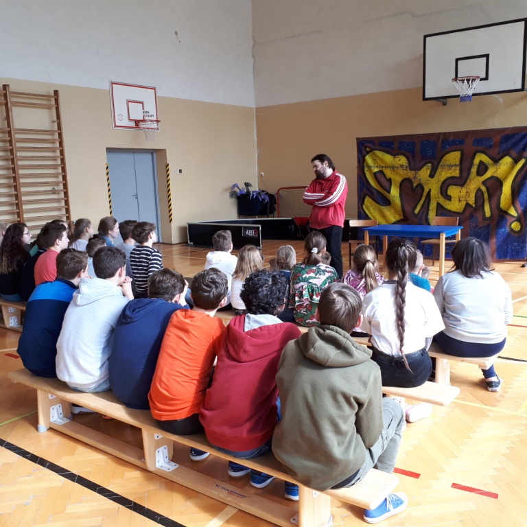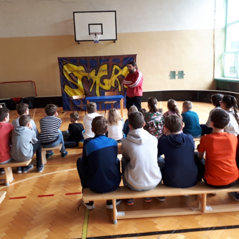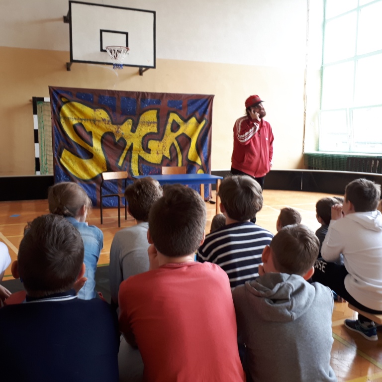 W czwartek 28 marca nasi uczniowie mieli okazję obejrzeć przedstawienie teatralne wystawione przez Impresariat Artystyczny „Inspiracja” z Krakowa. Spektakl nosił tytuł: „Wyjść poza schemat” i dotyczył problemu agresji i różnych formy przemocy w postaci prześladowania, zastraszania, nękania, wyśmiewania w stosunku do innych ludzi. Poruszał także tematykę cyberprzemocy czyli wysyłania obraźliwych e-maili i SMS-ów, publikowania ośmieszających zdjęć, filmów i informacji na temat innych osób. Spektakl uzmysłowił uczniom destruktywny wpływ agresywnych zachowań na psychikę prześladowanej osoby oraz negatywne konsekwencje przemocy na kształtowanie osobowości młodzieży. Po zakończonym przedstawieniu odbyła się pogadanka, podczas której aktorzy uświadamiali uczniom, że należy reagować na przemoc poprzez mówienie o niej osobom dorosłym – np. rodzicom, nauczycielom w szkole, koleżankom i kolegom. Celem cyberagresji tak naprawdę może być każdy, każdy z nas jest jednak także odpowiedzialny aby na nią reagować i nie pozwolić się jej rozpowszechniać.