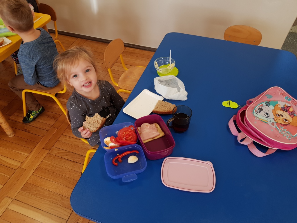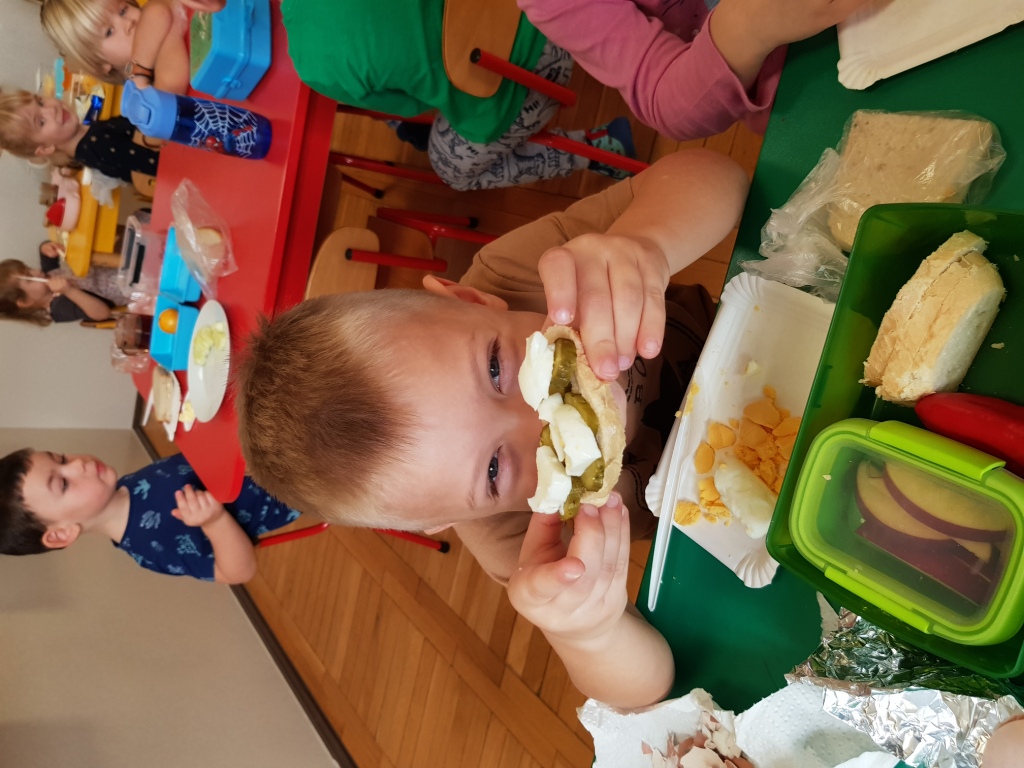 Zdrowa kanapka powinna być stałym elementem naszej diety, dlatego też przedszkolaki przyniosły ze sobą do oddziału przedszkolnego wszystkie niezbędne składniki a następnie własnoręcznie przygotowały swoje kanapki, które ze smakiem zjadły. Oprócz walorów zdrowotnych w własnoręczne przygotowanie śniadania było również lekcją samodzielności dla dzieci.