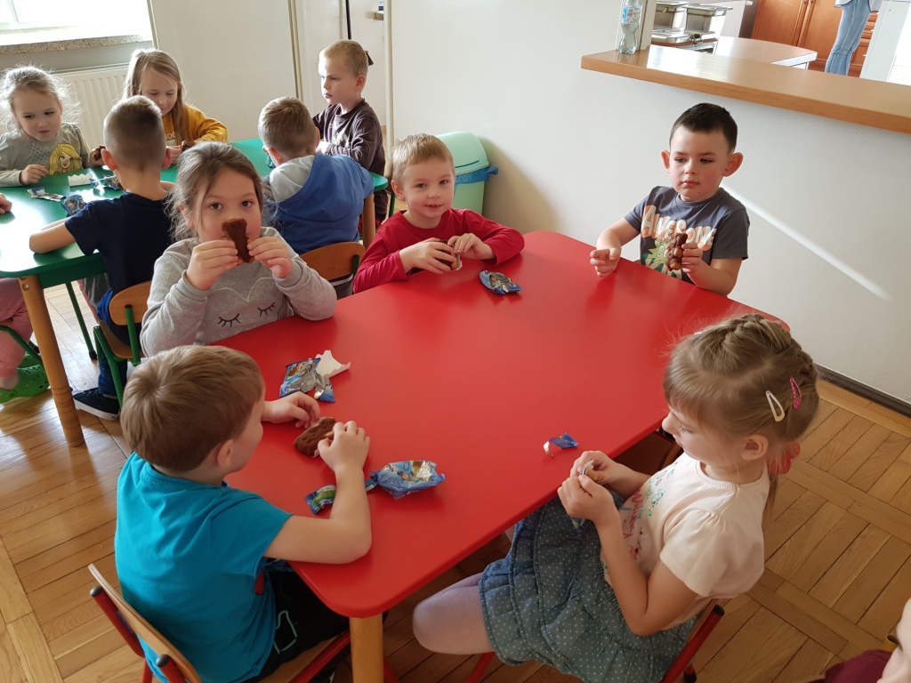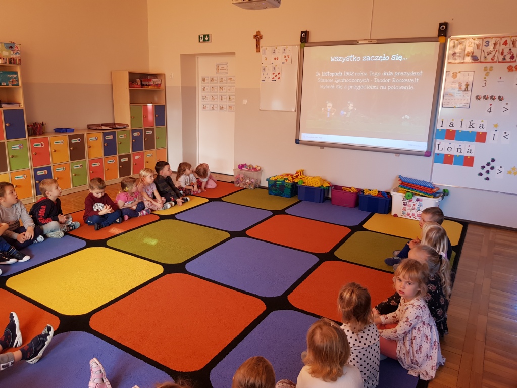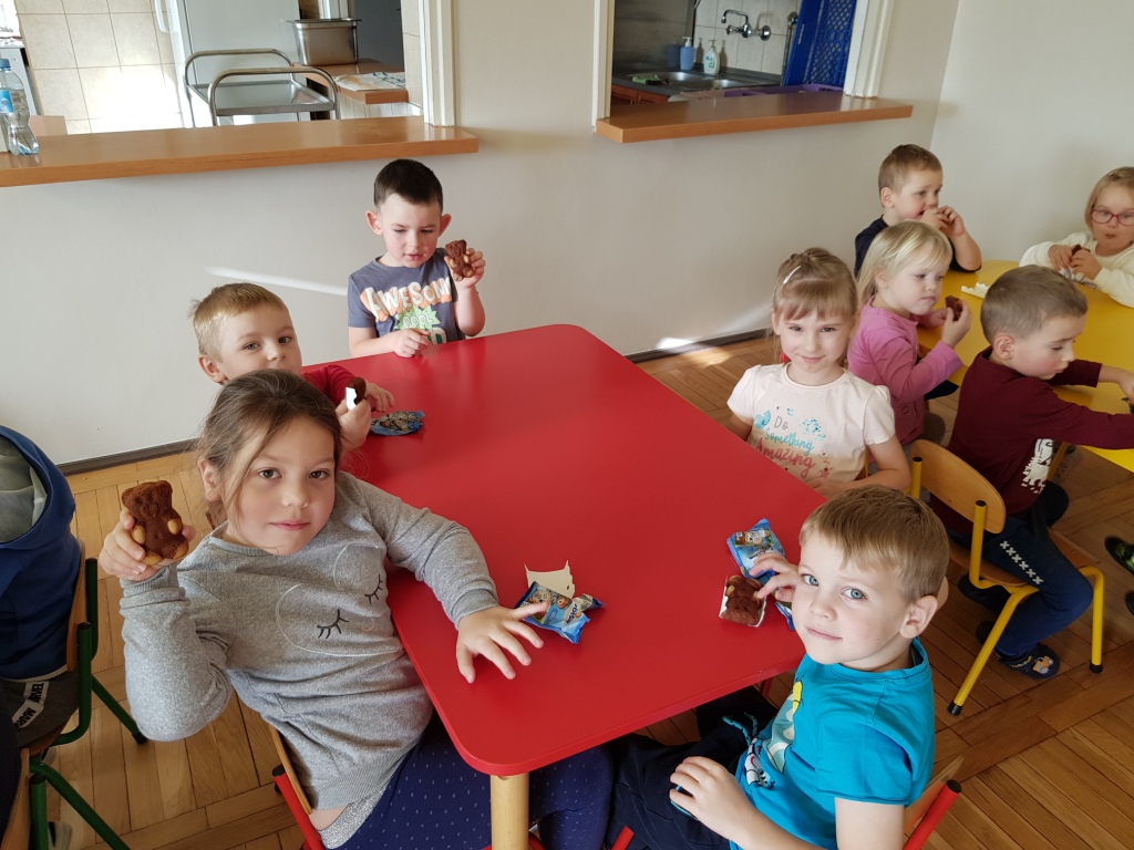25 listopada w oddziale przedszkolnym obchodziliśmy Dzień Pluszowego Misia. Na początek dzieci poznały historię obchodów święta, miały za zadanie także rozpoznać, który miś przedstawiony na zdjęciach należy do nich. Dzieci poradziły sobie z zadaniem bardzo dobrze. Nie zabrakło również doświadczeń, tańców w rytm misiowych piosenek oraz słodkiego poczęstunku.
