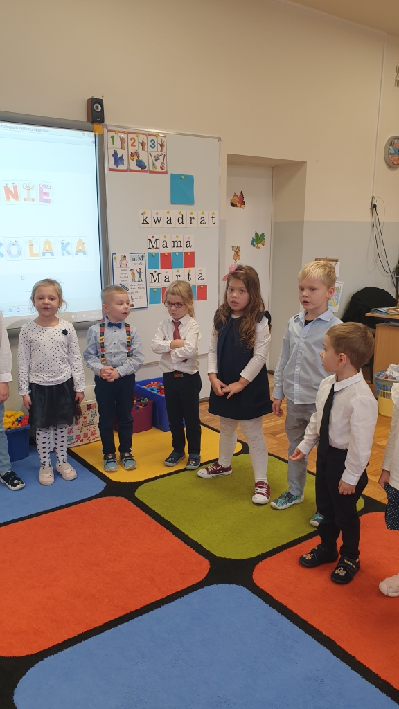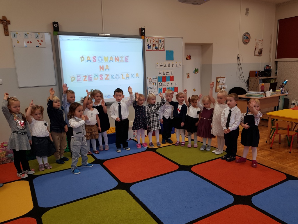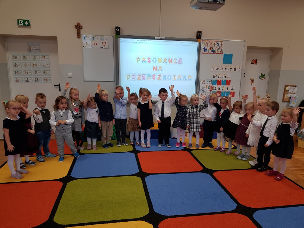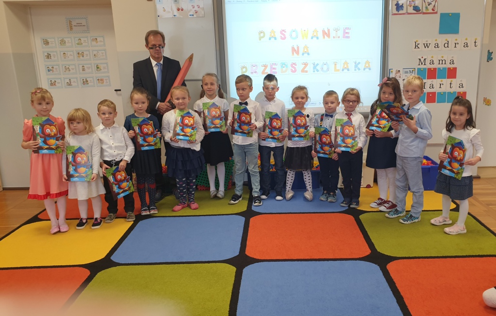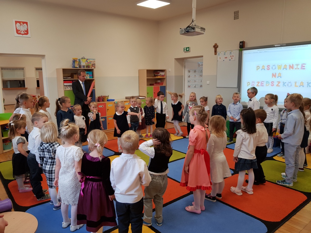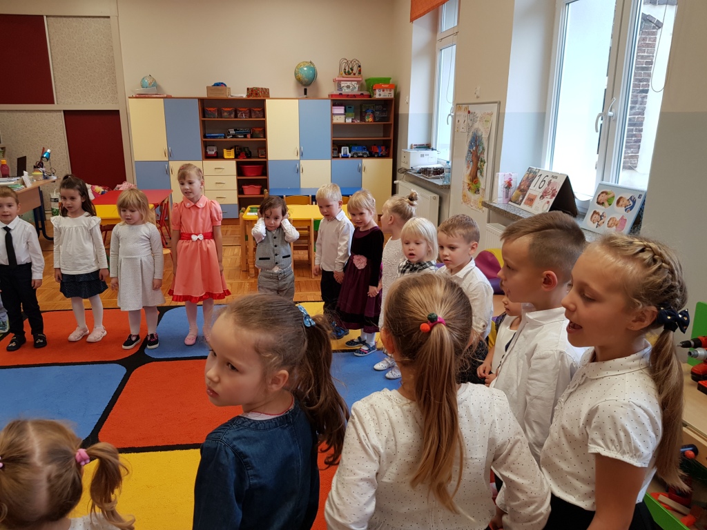 Temat bezpieczeństwa jest dzieciom szczególnie bliski. Z tej okazji do oddziału przedszkolnego zawitali Strażnicy Miejscy, którzy zapoznali dzieci z zasadami prawidłowego zachowania się na drodze, w domu, kiedy nie ma dorosłego a także w czasie spotkania z nieznanym psem. Dzieci z zaangażowaniem odpowiadały na pytania Strażników, zadawały również własne pytania na nurtujące ich problemy. Strażnicy poruszyli także kwestię bycia widocznym po zmierzchu i wręczyli wszystkim dzieciom odblaski.