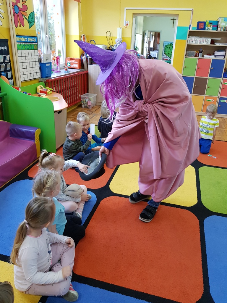 Do przedszkolaków 29 listopada zawitał niespodziewany gość – Wróżka, która przyniosła ze sobą kapelusz pełen wróżb i przepowiedni na przyszłość. Dzieci mogły dowiedzieć się, kim zostaną w przyszłości oraz kto pojedzie w niezwykłą podróż. Nie zabrakło również wróżenia z kolorów oraz wspólnych tańców.