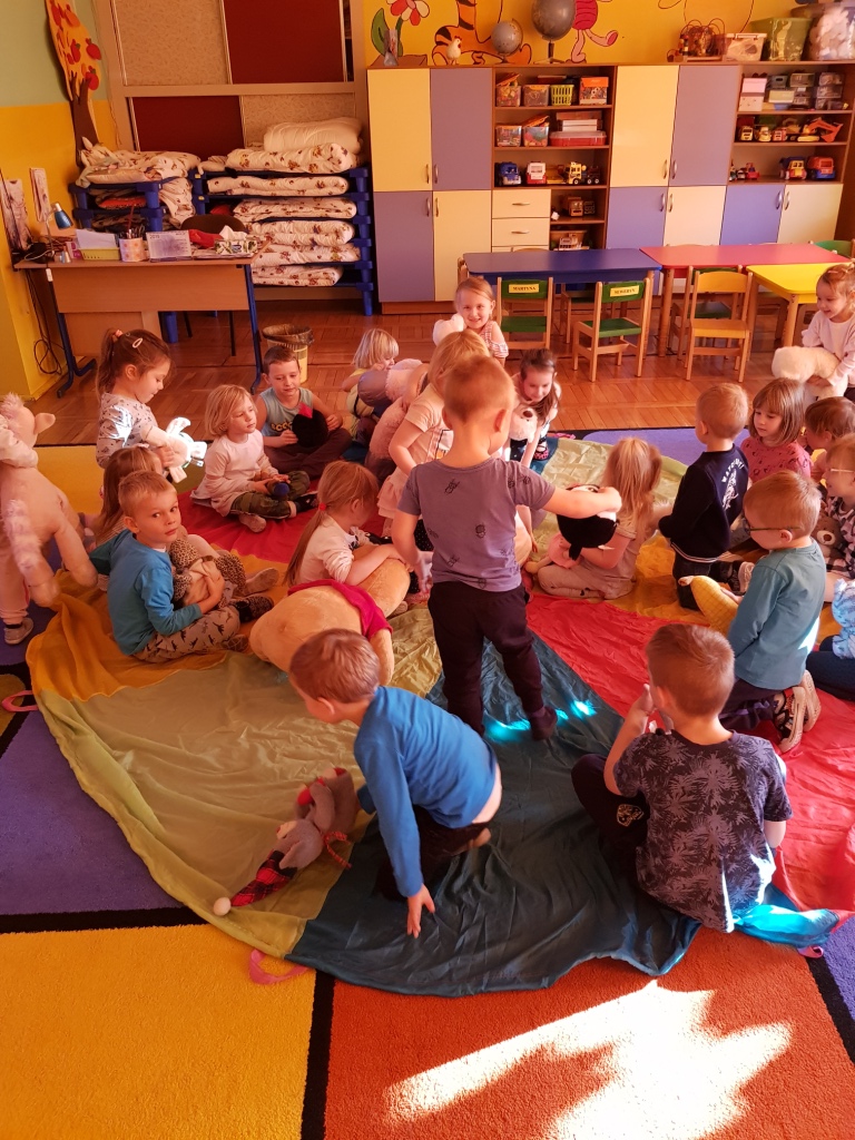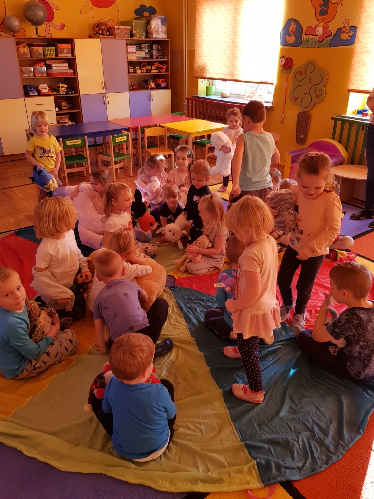 Jak wiadomo najlepszym przyjacielem każdego dziecka jest pluszowy miś, dlatego z okazji przypadającego 25 listopada Dnia Pluszowego Misia dzieci przyniosły ze sobą swoje ulubione maskotki, które przedstawiły swoim kolegom. W tym dniu nie zabrakło tańców z misiami, zagadek i zabaw z chustą. Każde dziecko mogło przez chwilę być misiem, który szukał przyjaciela. Dzień Pluszowego Misia zakończył się bajką Misiowej Mamy.