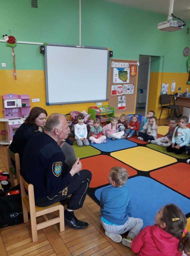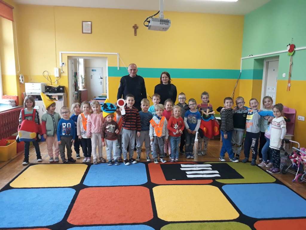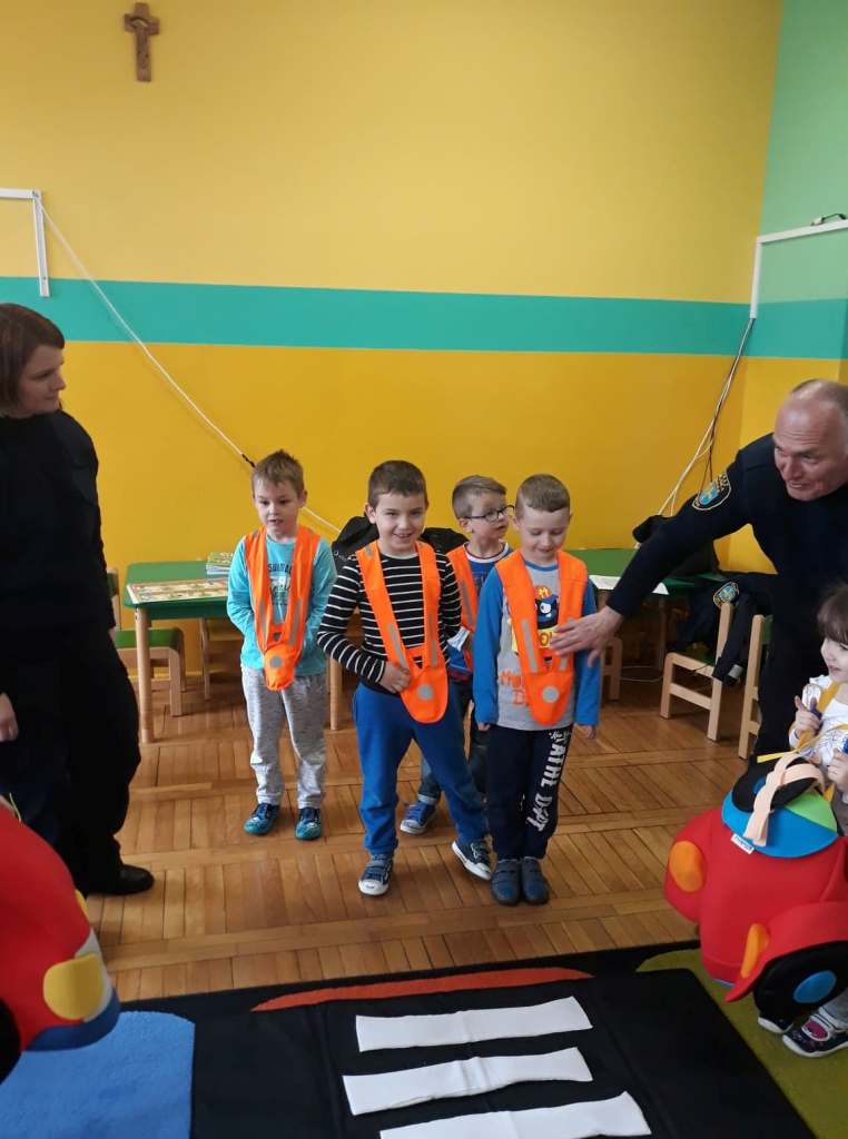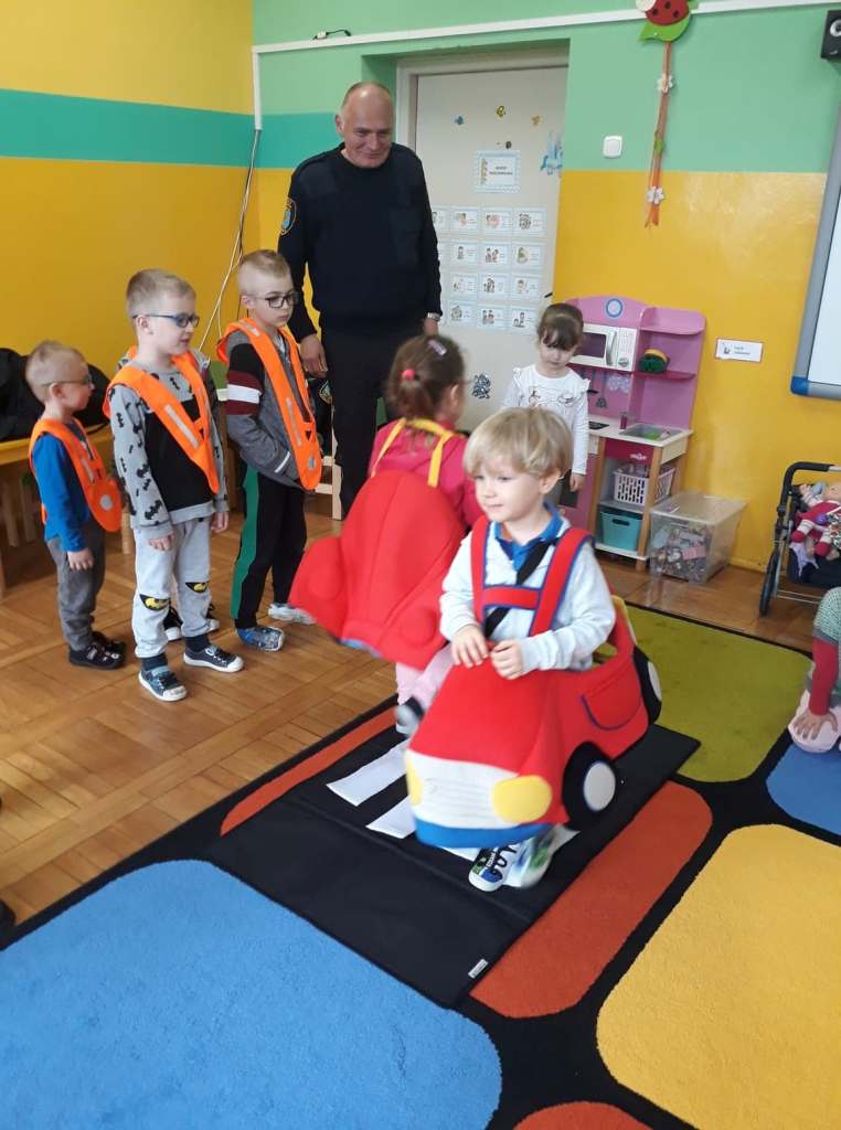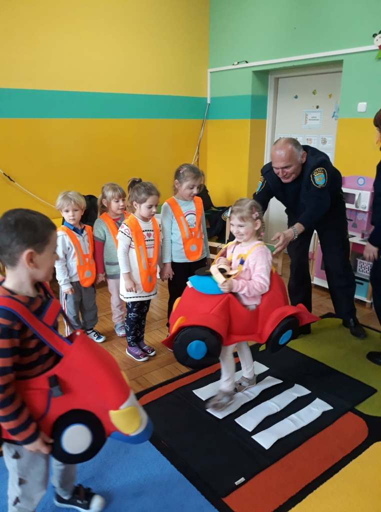 W maju przedszkolaków odwiedzili strażnicy miejscy, którzy przeprowadzili zajęcia dotyczące bezpiecznego poruszania się po drodze. Przedszkolaki zdobytą w trakcie zajęć wiedzę mogły przetestować w praktyce i poczuć się jak prawdziwi kierowcy dzięki licznym rekwizytom, które bardzo się dzieciom podobały.