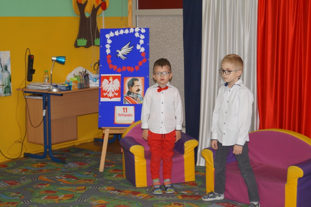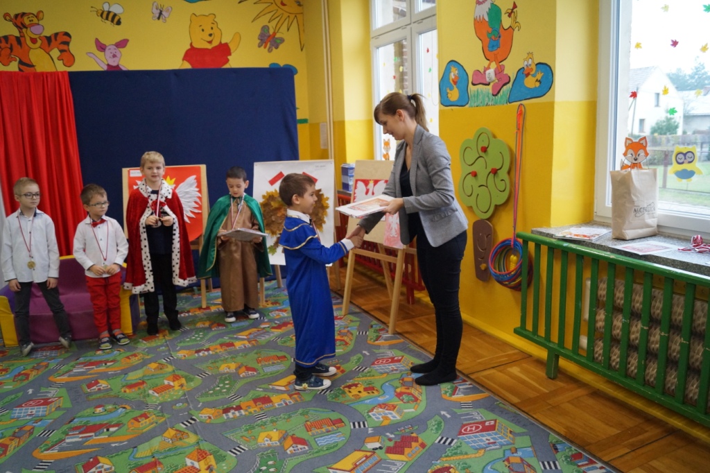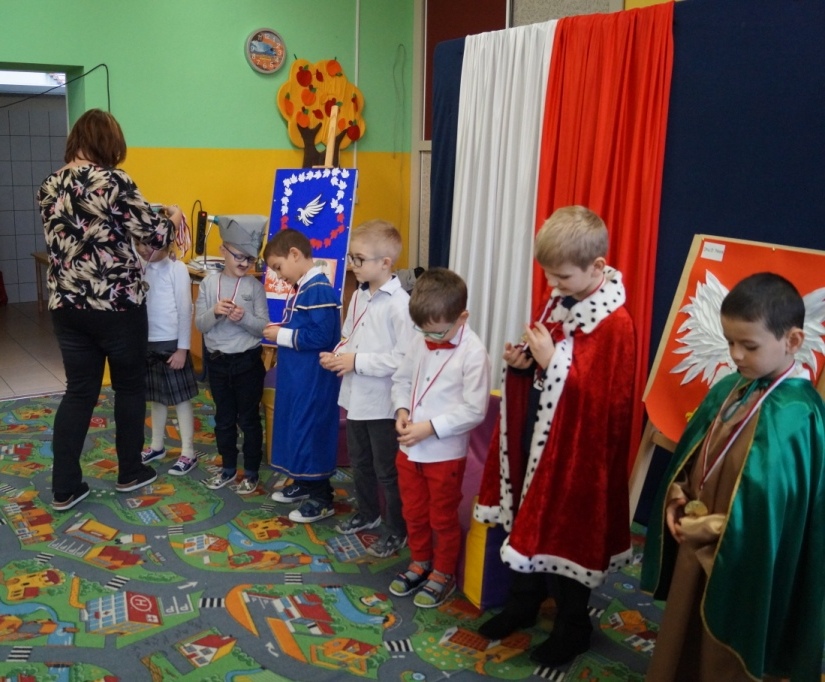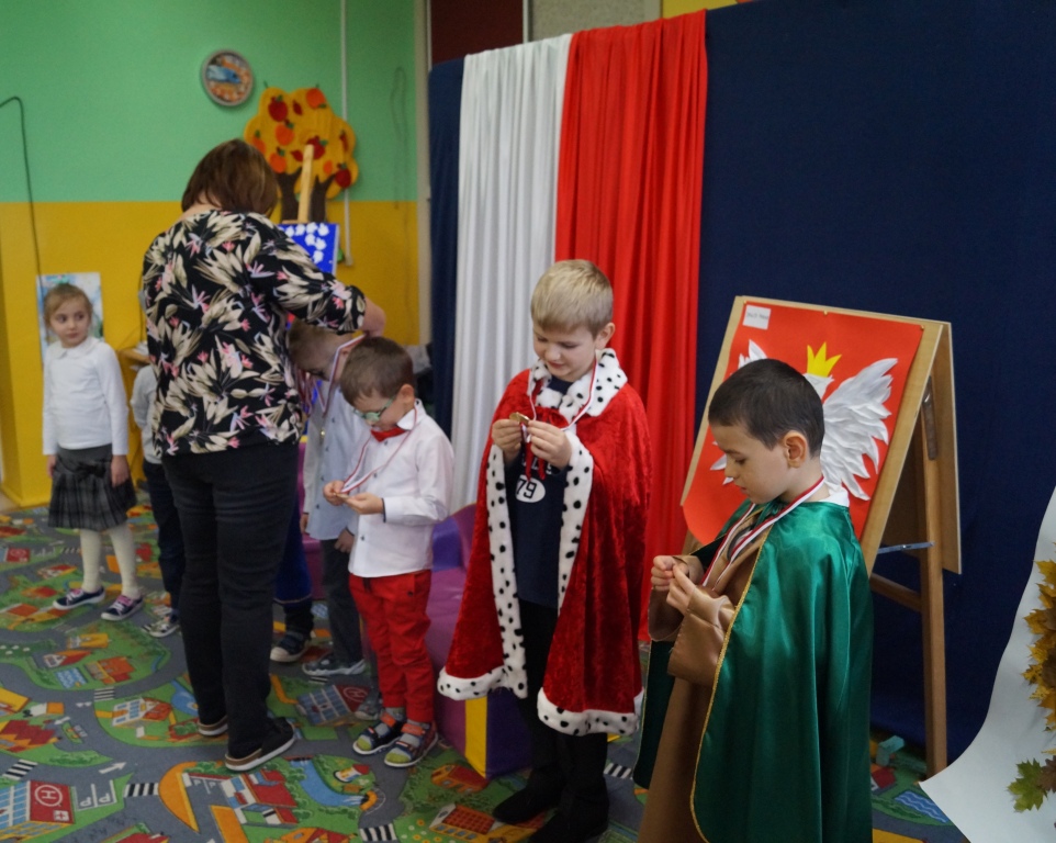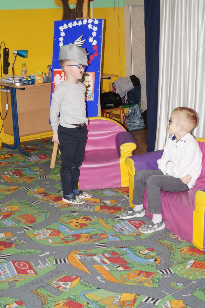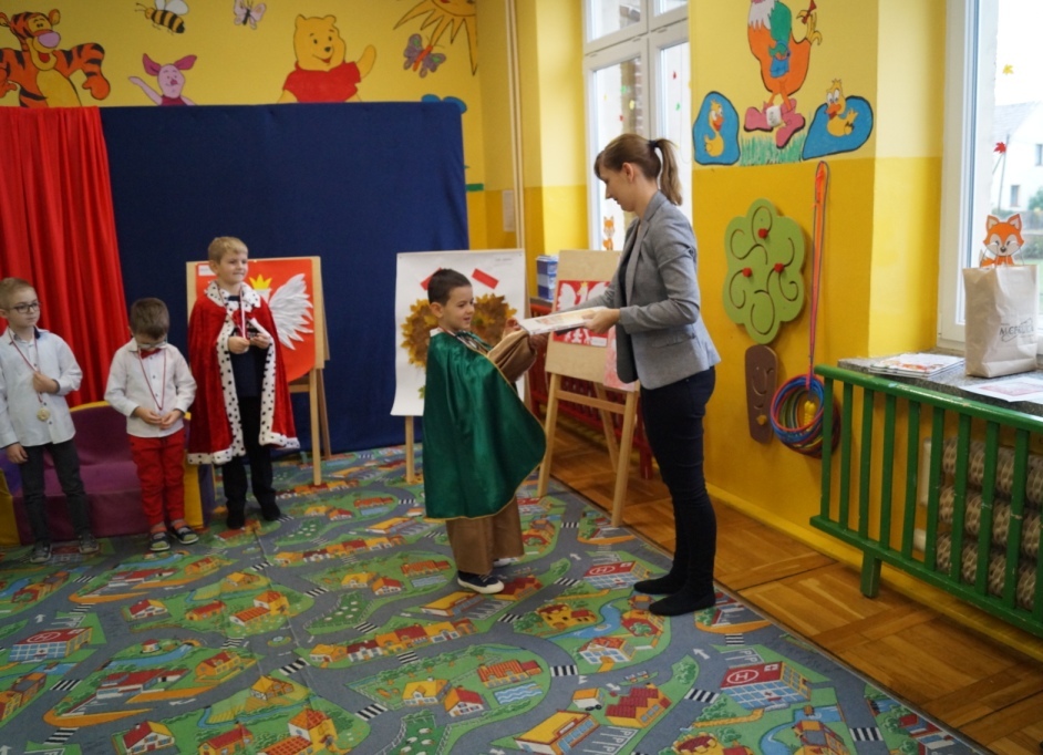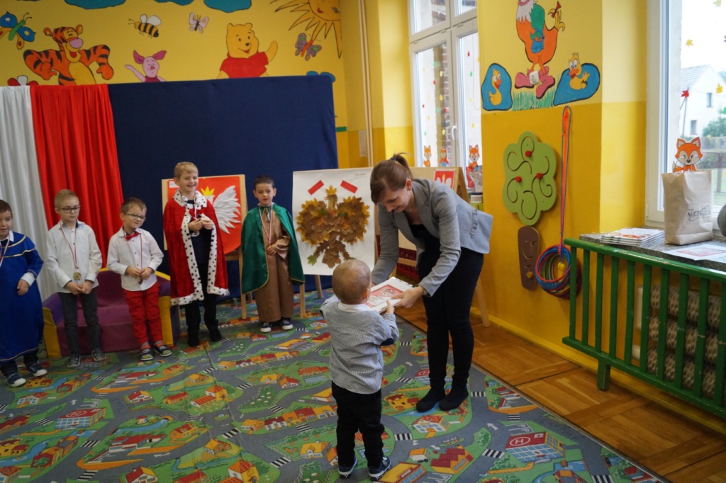 100-lecie odzyskania przez Polskę niepodległości było okazją dla przedszkolaków do zaprezentowania na ten temat inscenizacji. W roli głównej wystąpiły 6-latki. Z tej okazji gościliśmy u siebie uczniów klas I-III wraz z wychowawczyniami. Po występie dzieci nauczycielki oddziału przedszkolnego wręczyły aktorom pamiątkowe medale oraz nagrody za udział w konkursie „Jaki znak Twój? – Orzeł biały”. W podziękowaniu za zaproszenie wychowawczynie klas I-III przygotowały dla dzieci niespodziankę – słodki poczęstunek.