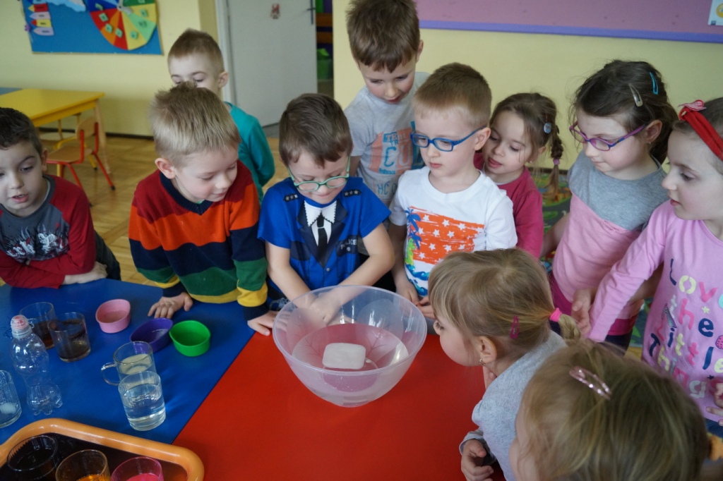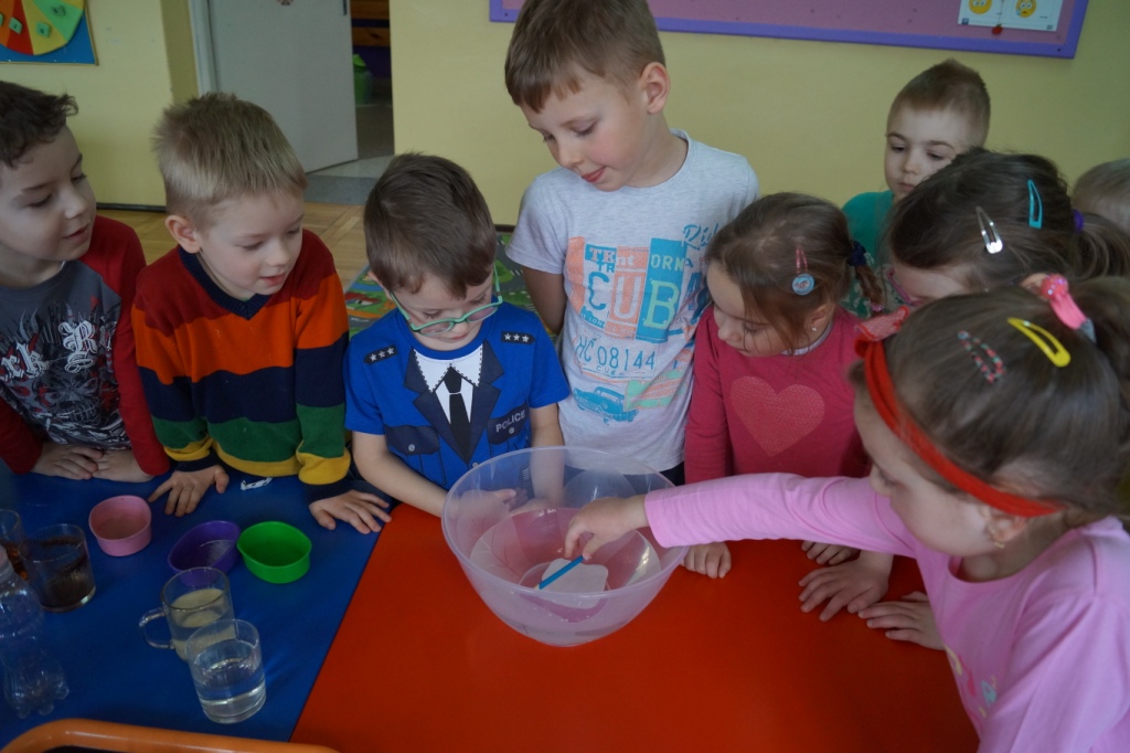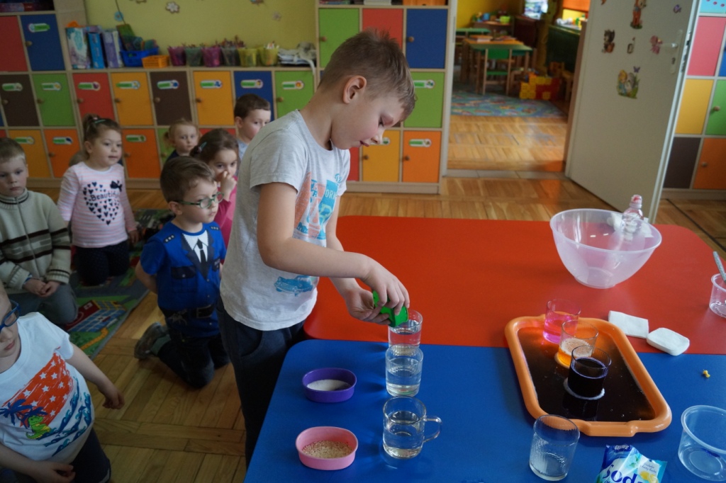 W marcu przypada Światowy Dzień Wody. Z tej okazji dzieci z oddziału przedszkolnego poznały historię kropli wody - dowiedziały się, jaką drogę musi przebyć woda zanim stanie się zdatna do użytku, jak należy postępować z wodą i czego nie można robić. Dowiedziały się także, że wodę trzeba oszczędzać i można to robić. Największe wrażenie na dzieciach wywarły eksperymenty z wodą, które samodzielnie przeprowadziły i dzięki którym poznały jej właściwości.