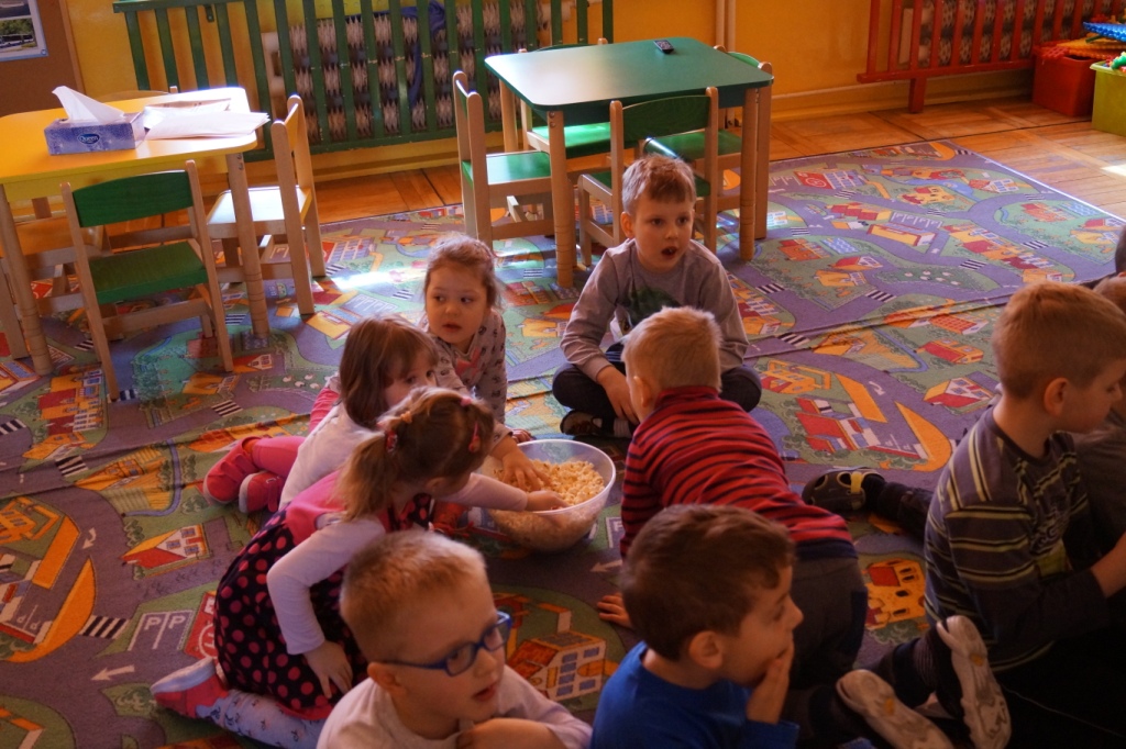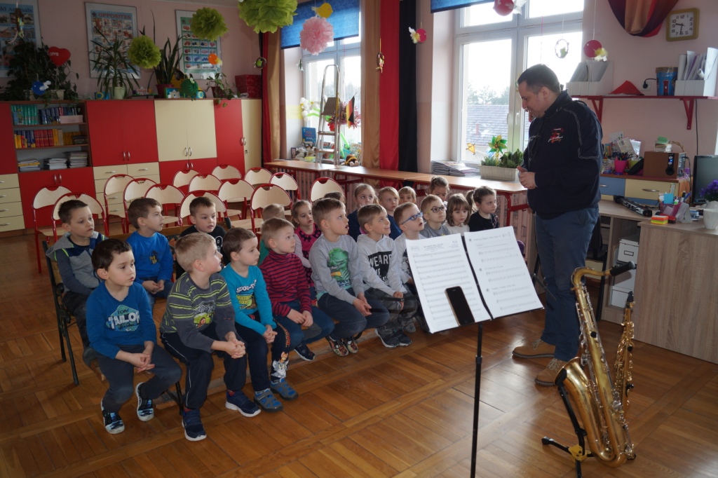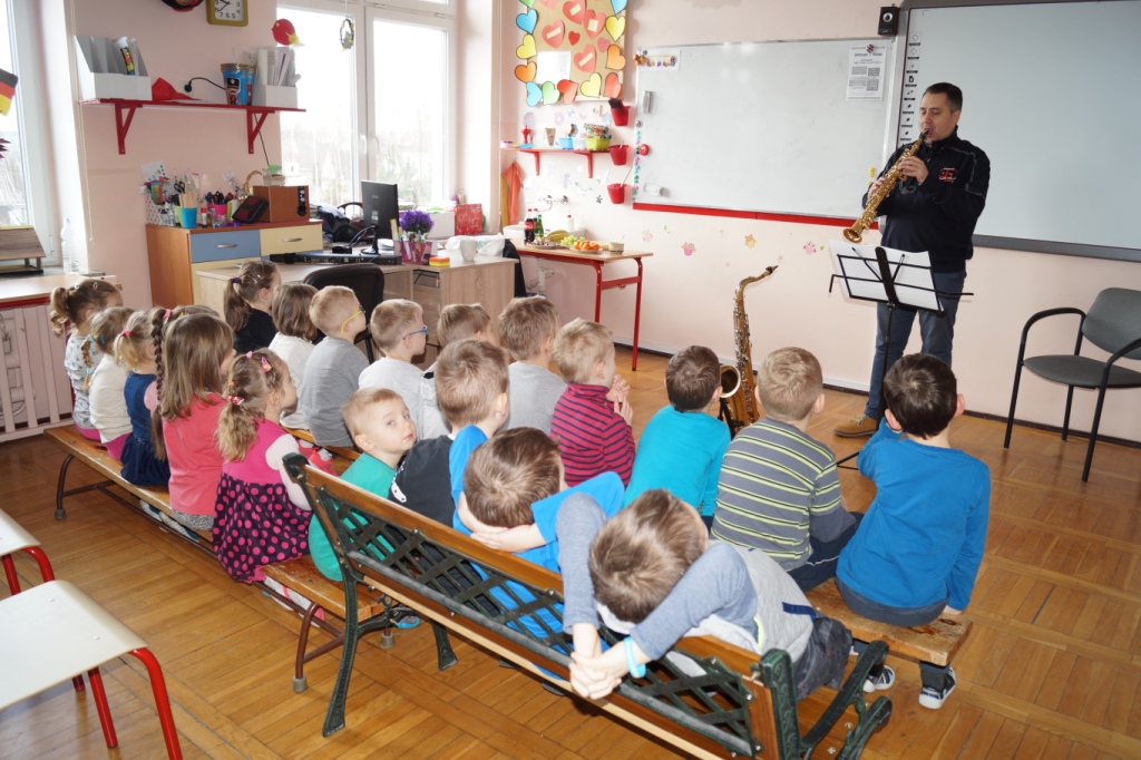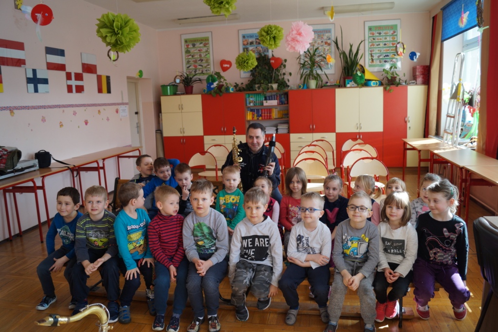 Po długiej i szarej zimie przedszkolaki z niecierpliwością wyczekiwały pierwszego dnia wiosny. Kiedy już nadszedł przywitały go muzycznie i filmowo. Najpierw dzieci wzięły udział w warsztatach saksofonowych, gdzie dowiedziały się wielu ciekawych rzeczy dotyczących tego instrumentu. Po warsztatach przedszkolaki wybrały się na dwór w towarzystwie marzanny, którą własnoręcznie przygotowały, aby wspólnie pożegnać zimę i zaprosić do nas wiosnę. Po powrocie do przedszkola czekało na dzieci kino z obowiązkowym popcornem.