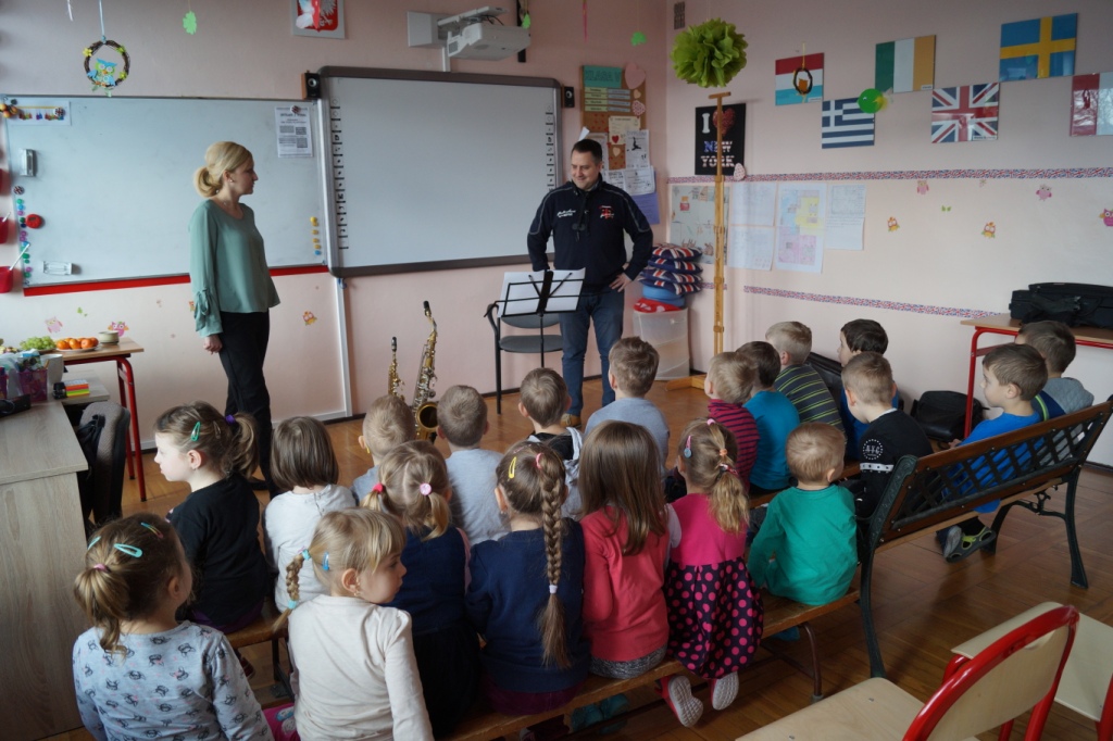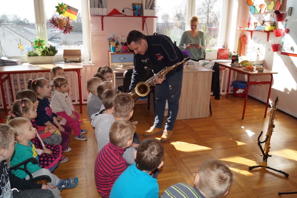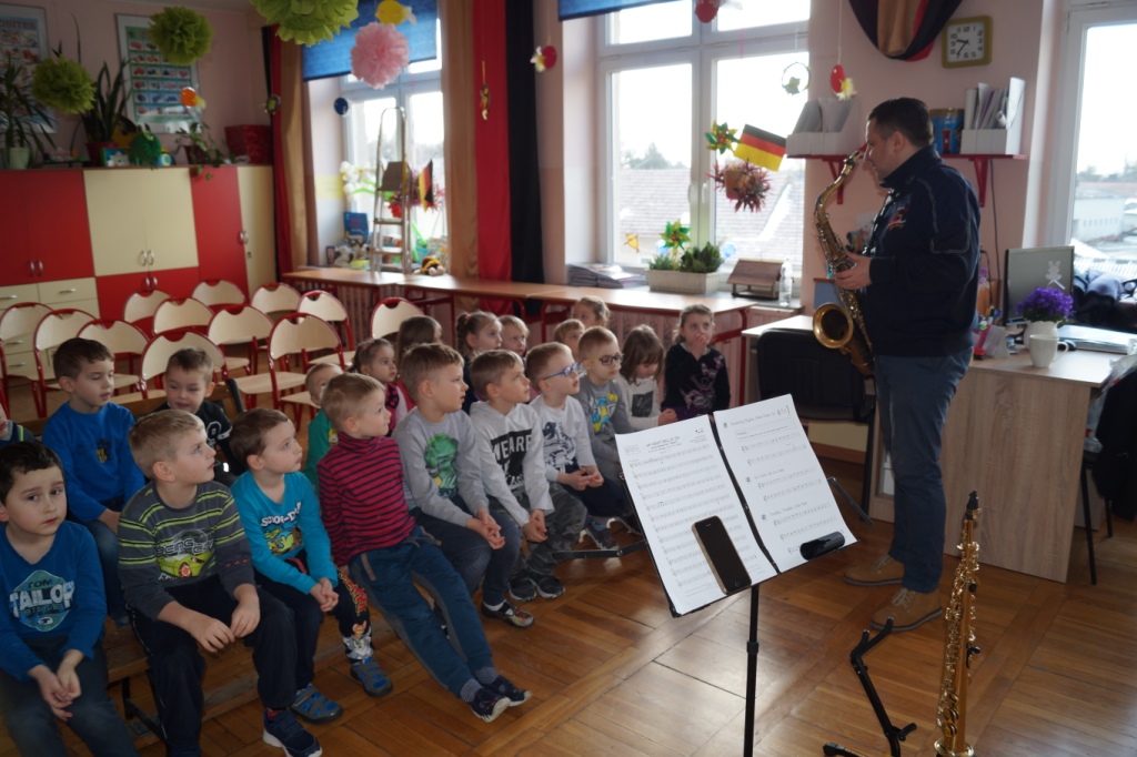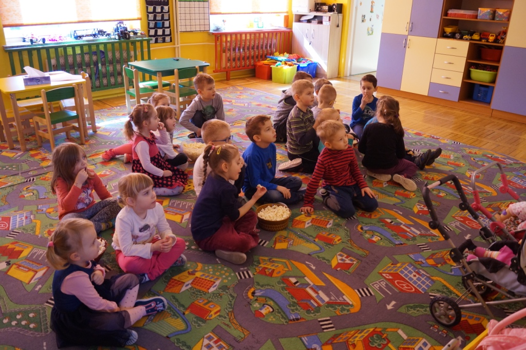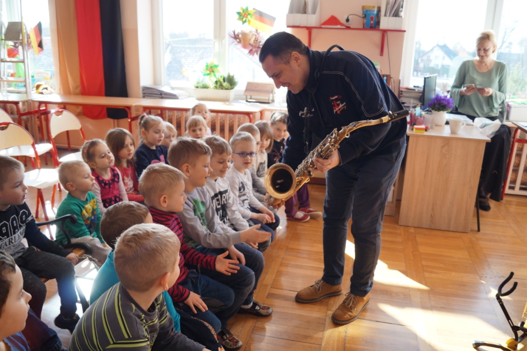 Po długiej i szarej zimie przedszkolaki z niecierpliwością wyczekiwały pierwszego dnia wiosny. Kiedy już nadszedł przywitały go muzycznie i filmowo. Najpierw dzieci wzięły udział w warsztatach saksofonowych, gdzie dowiedziały się wielu ciekawych rzeczy dotyczących tego instrumentu. Po warsztatach przedszkolaki wybrały się na dwór w towarzystwie marzanny, którą własnoręcznie przygotowały, aby wspólnie pożegnać zimę i zaprosić do nas wiosnę. Po powrocie do przedszkola czekało na dzieci kino z obowiązkowym popcornem.