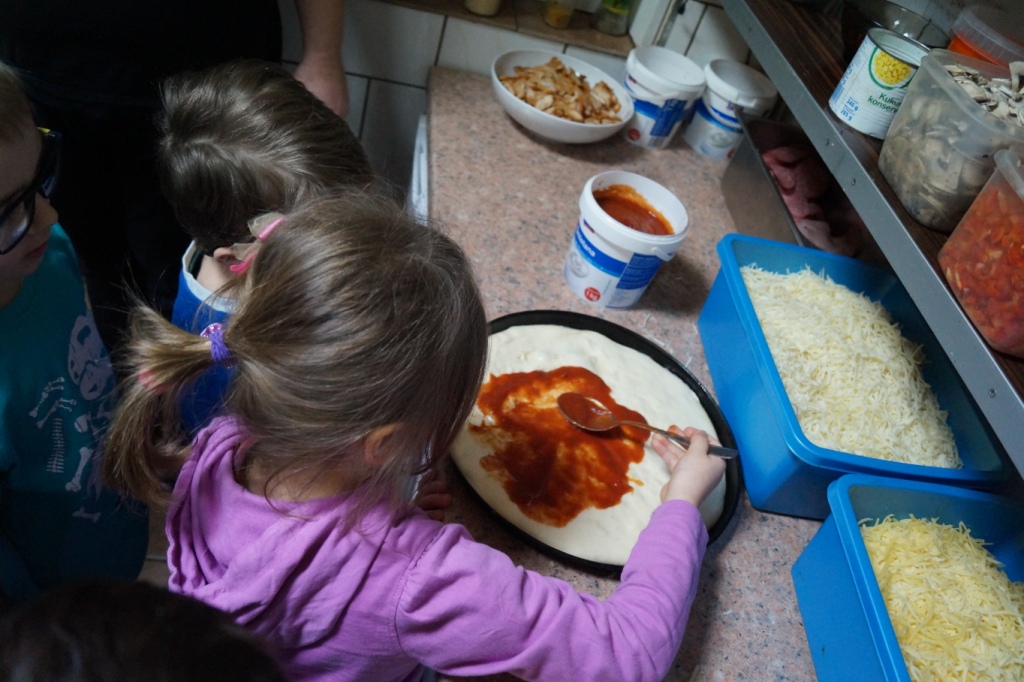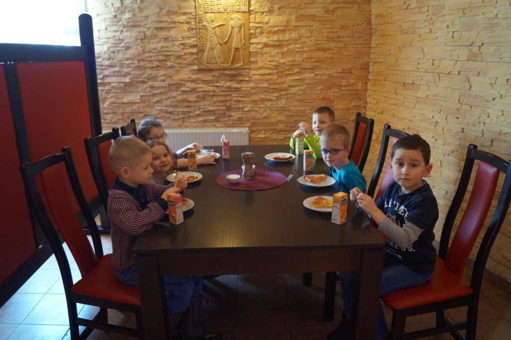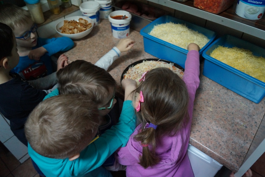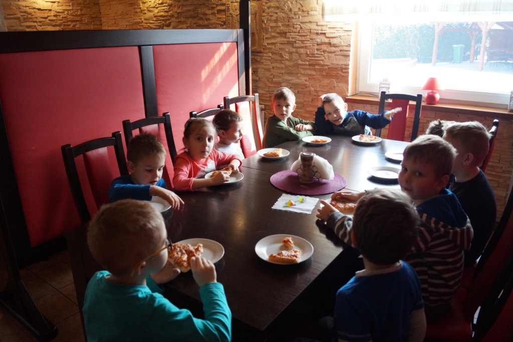 Z okazji Międzynarodowego Dnia Pizzy przedszkolaki wybrały się do Pizzerii Piramida w Domecku, gdzie dzięki uprzejmości właścicieli oraz obsługi miały okazję nie tylko zobaczyć jak powstaje pizza, ale także samodzielnie ją przyrządzić. Spotkanie przyniosło dzieciom dużo niezapomnianych wrażeń.