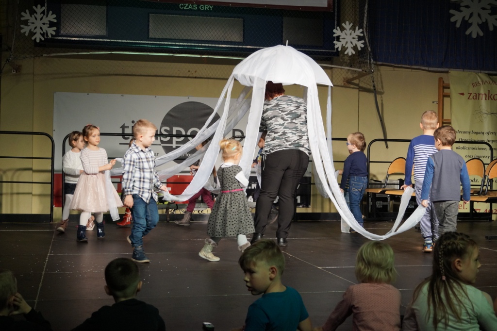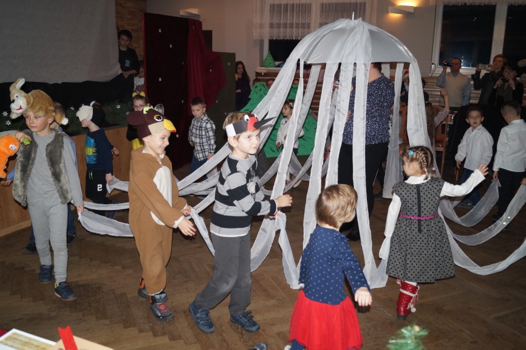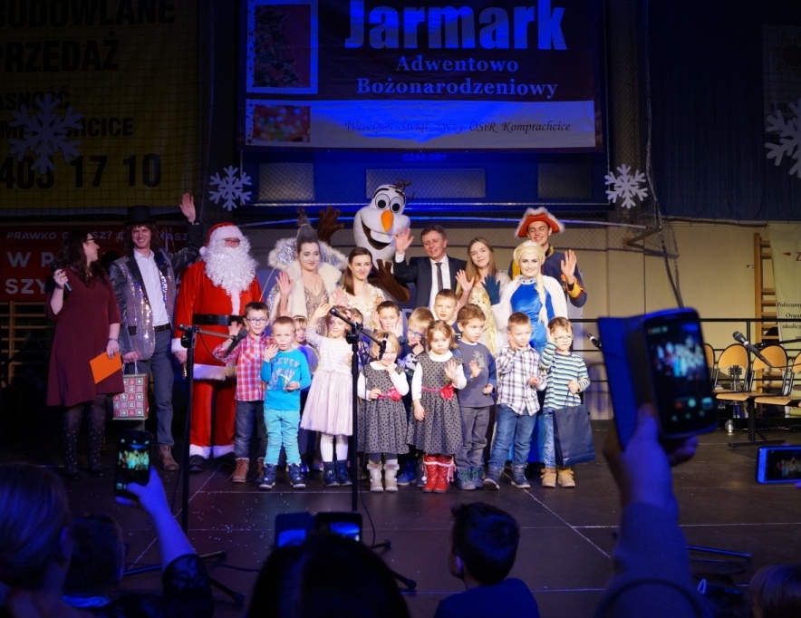 W niedzielę 17 grudnia dzieci z Oddziału Przedszkolnego w Domecku wystąpiły na Jarmarku Bożonarodzeniowym w Komprachcicach. Przedszkolaki zaśpiewały „Kolędę świetlistą” oraz zaprezentowały świąteczny taniec. W nagrodę otrzymały z rąk Świętego Mikołaja słodki upominek. Największą niespodziankę sprawili bohaterowie bajek, którzy dołączyli do dzieci na scenie i wspólnie pozowali do zdjęć.