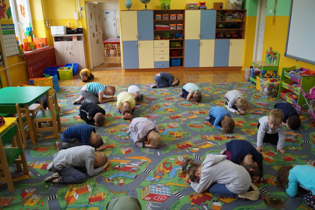 W listopadzie w oddziale przedszkolnym świętowaliśmy Dzień Jeża. Z tej okazji wszystkie dzieci poznały ciekawostki dotyczące życia zwierzątka, jego zwyczajów, wyglądu, a także mogły same poczuć się jak jeż szykujący dla siebie miejsce na zimę, w czasie zabaw ruchowych. Przedszkolaki wysłuchały opowiadania „Jak Kolczatek szukał mieszkania” oraz stworzyły swojego własnego jeża z plasteliny i ziarenek kawy.