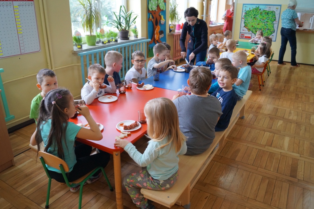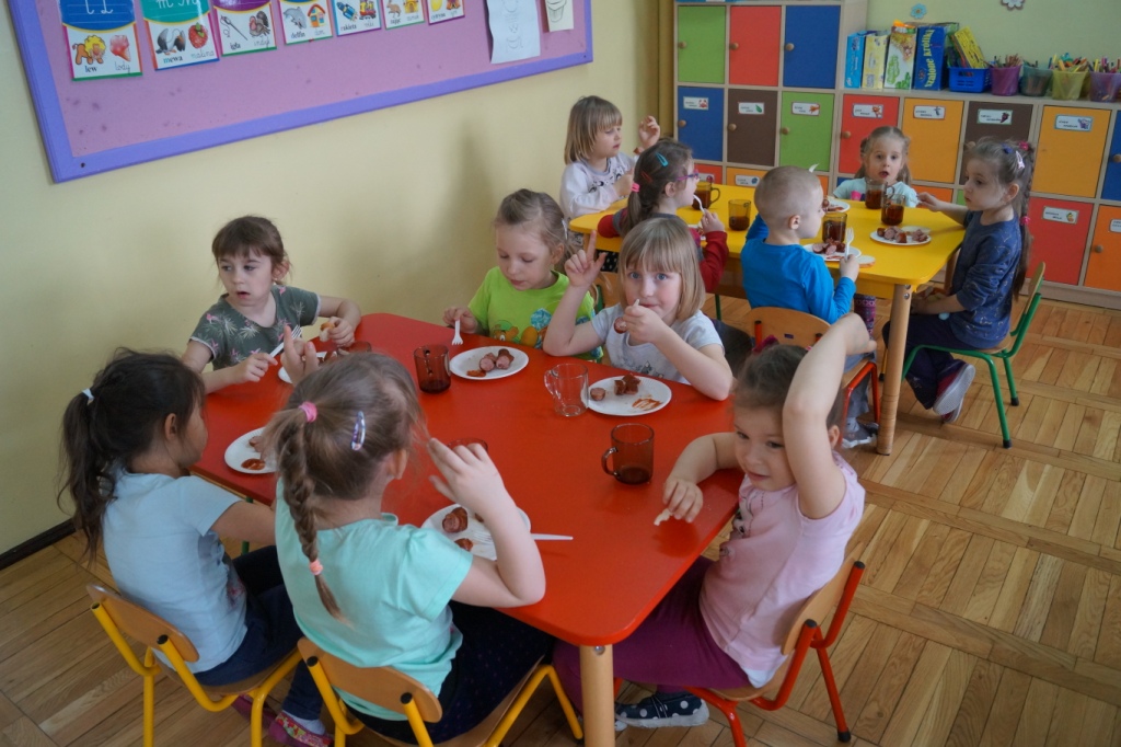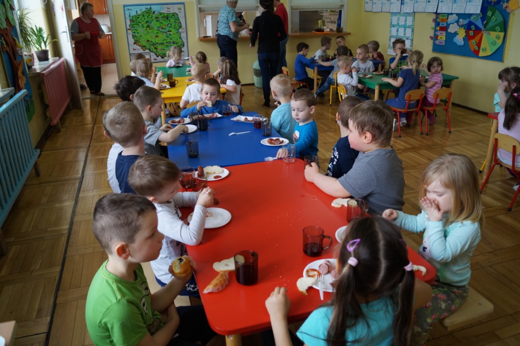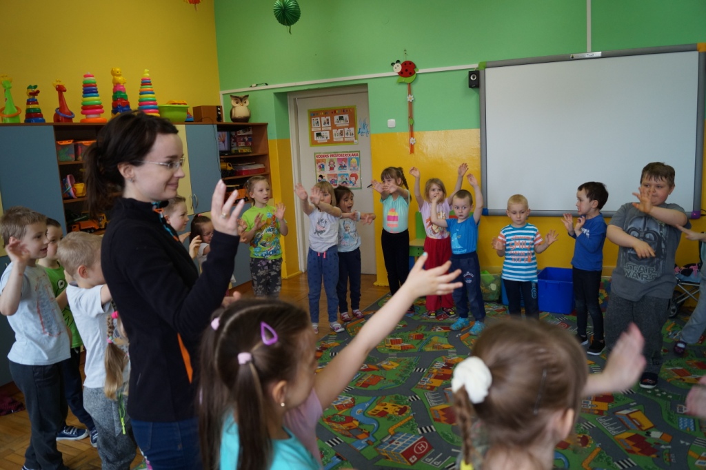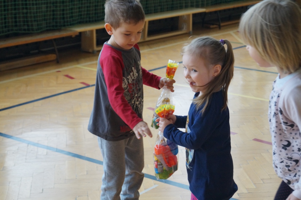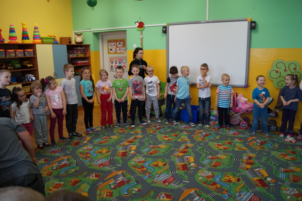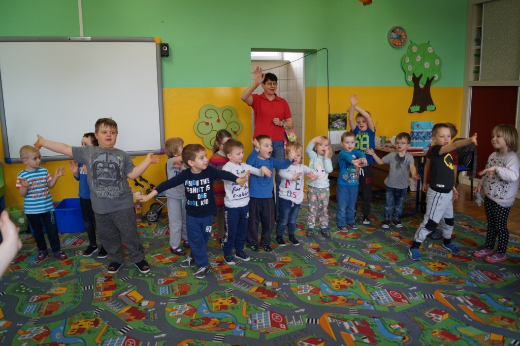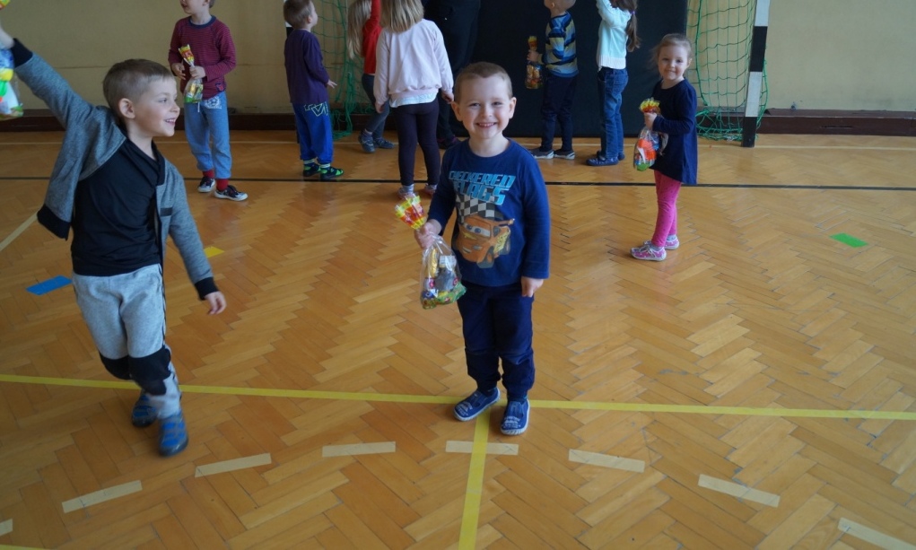 19 kwietnia przedszkolaków odwiedzili długo oczekiwani goście- koledzy z Oddziału Przedszkolnego w Wawelnie. Były wspólne tańce, zabawy, gra w piłkę a także dmuchany zamek, który sprawił dzieciom dużo radości. Po wspólnej zabawie na wszystkich czekał poczęstunek. Mimo brzydkiej pogody humory dopisywały a wspólnie spędzony czas minął bardzo szybko. Przedszkolaki z Domecka z niecierpliwością czekają na kolejne spotkanie i bardzo dziękują za prezenty, które otrzymały.