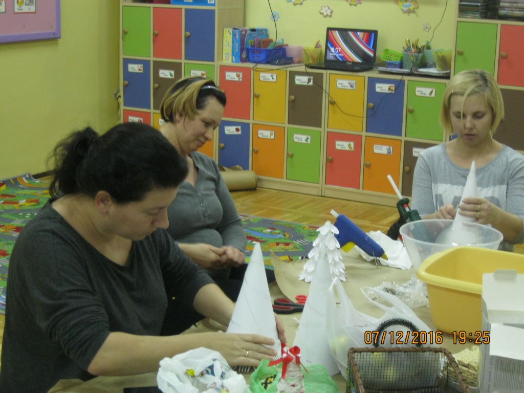 7 grudnia w Oddziale Przedszkolnym odbyły się warsztaty, na których wspólnie wykonaliśmy ozdoby świąteczne. Dzięki pomocy mam powstały piękne choinki, bombki i ozdoby świąteczne, które następnie trafiły na jarmark bożonarodzeniowy. Dziękujemy za pomoc i miło spędzony czas.