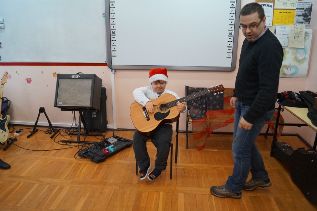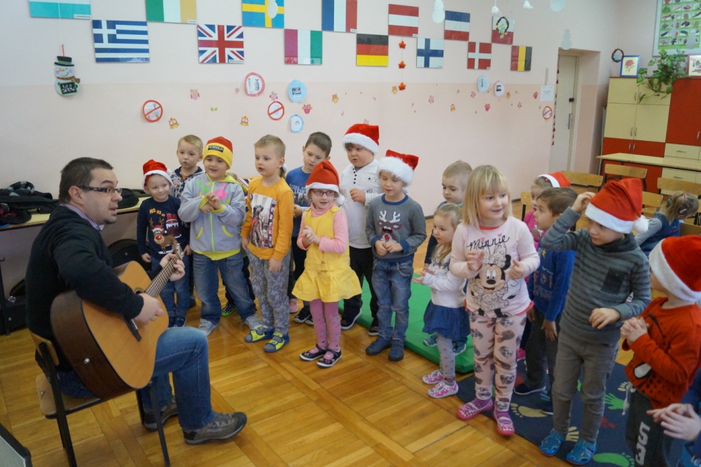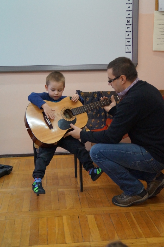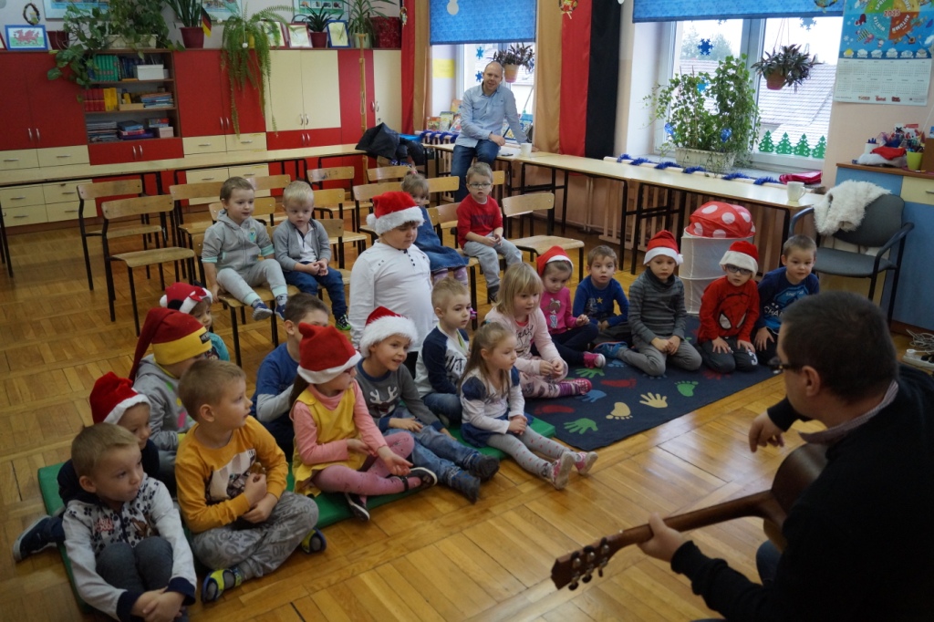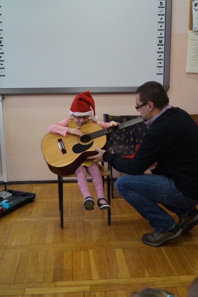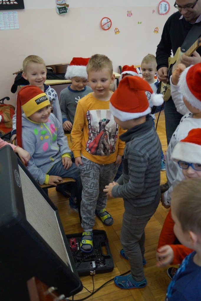 W grudniu przedszkolaki wzięły udział w warsztatach, na których poznały zarówno budowę jak i tajniki gry na gitarze. Każde dziecko miało okazję spróbować swoich sił, jako gitarzysta, co sprawiło im ogromną radość.