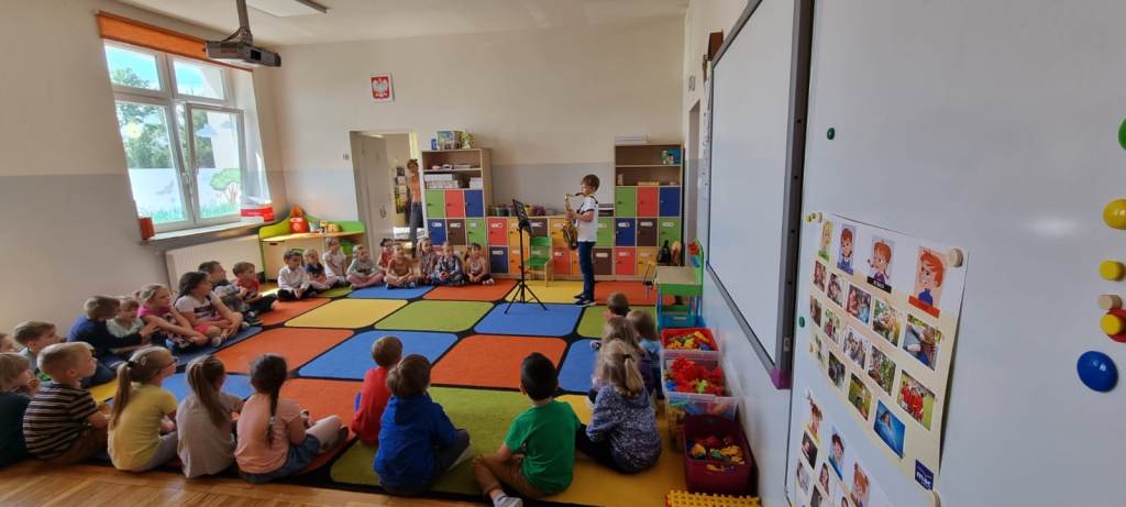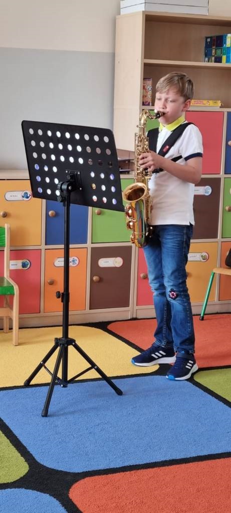 Niezmiernie miło, kiedy oddział przedszkolny odwiedzają jego absolwenci. Taka wizyta miała miejsce w maju, kiedy swoich kolegów odwiedził Pascal, który zaprezentował dzieciom swój talent. Przedszkolaki mogły wysłuchać prawdziwego koncertu gry na saksofonie. Dziękujemy za odwiedziny i życzymy Pascalowi wielu sukcesów.