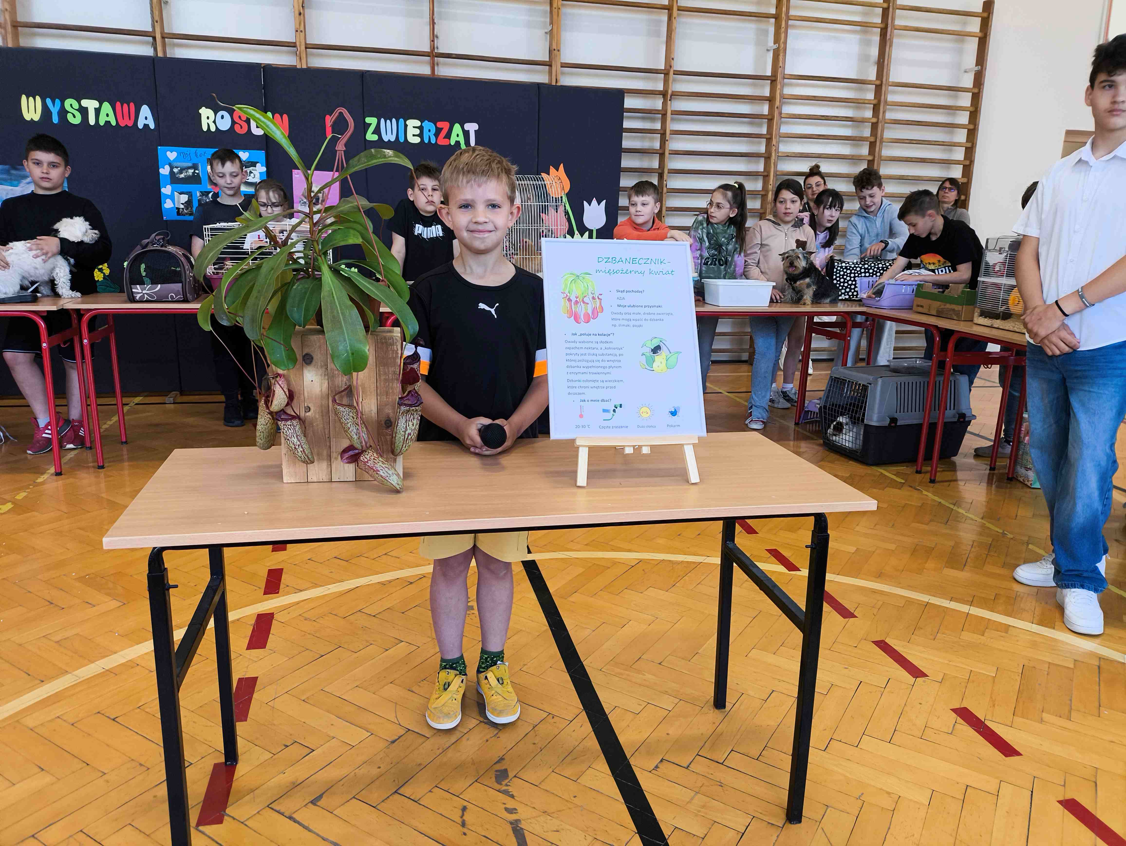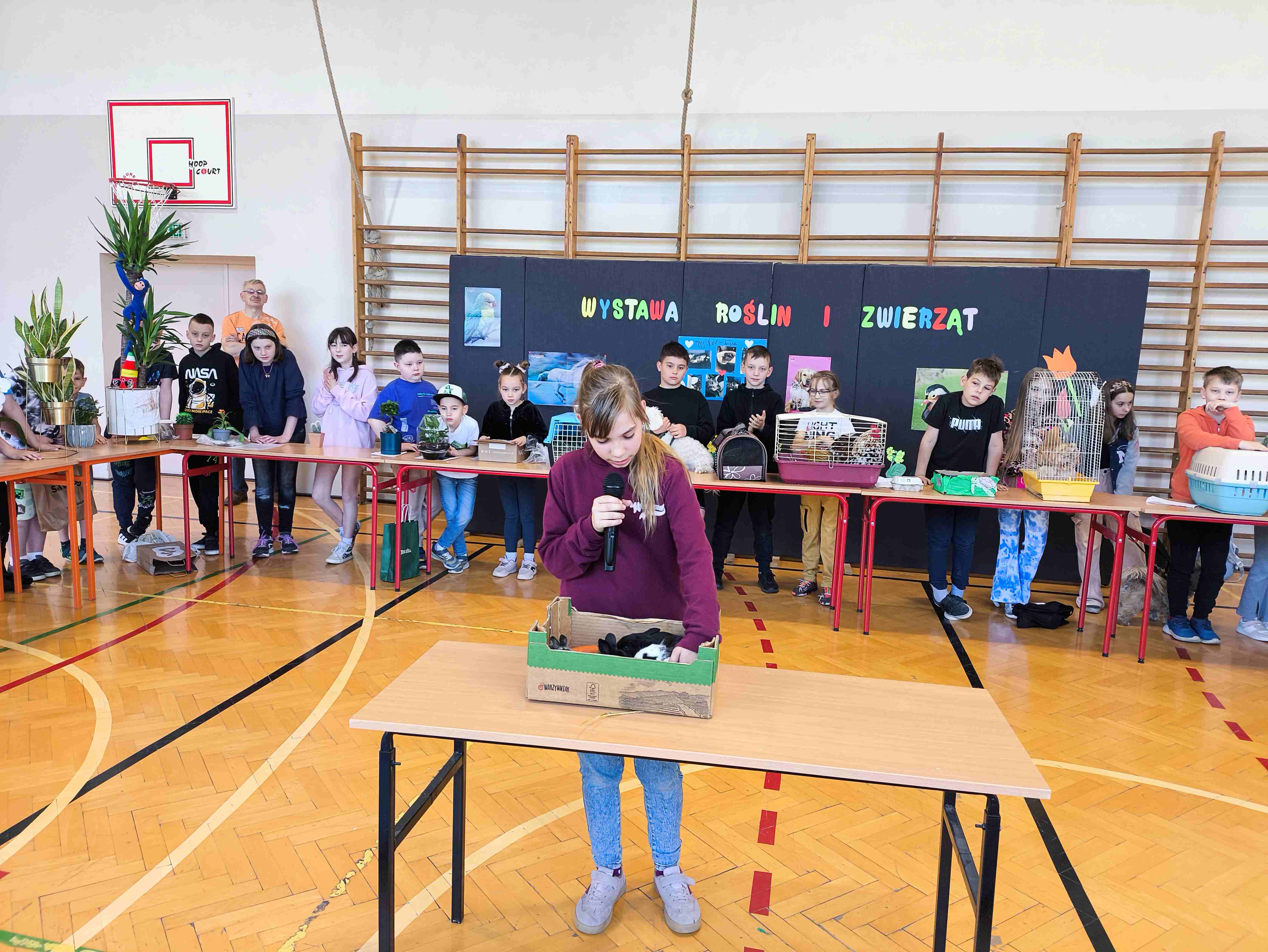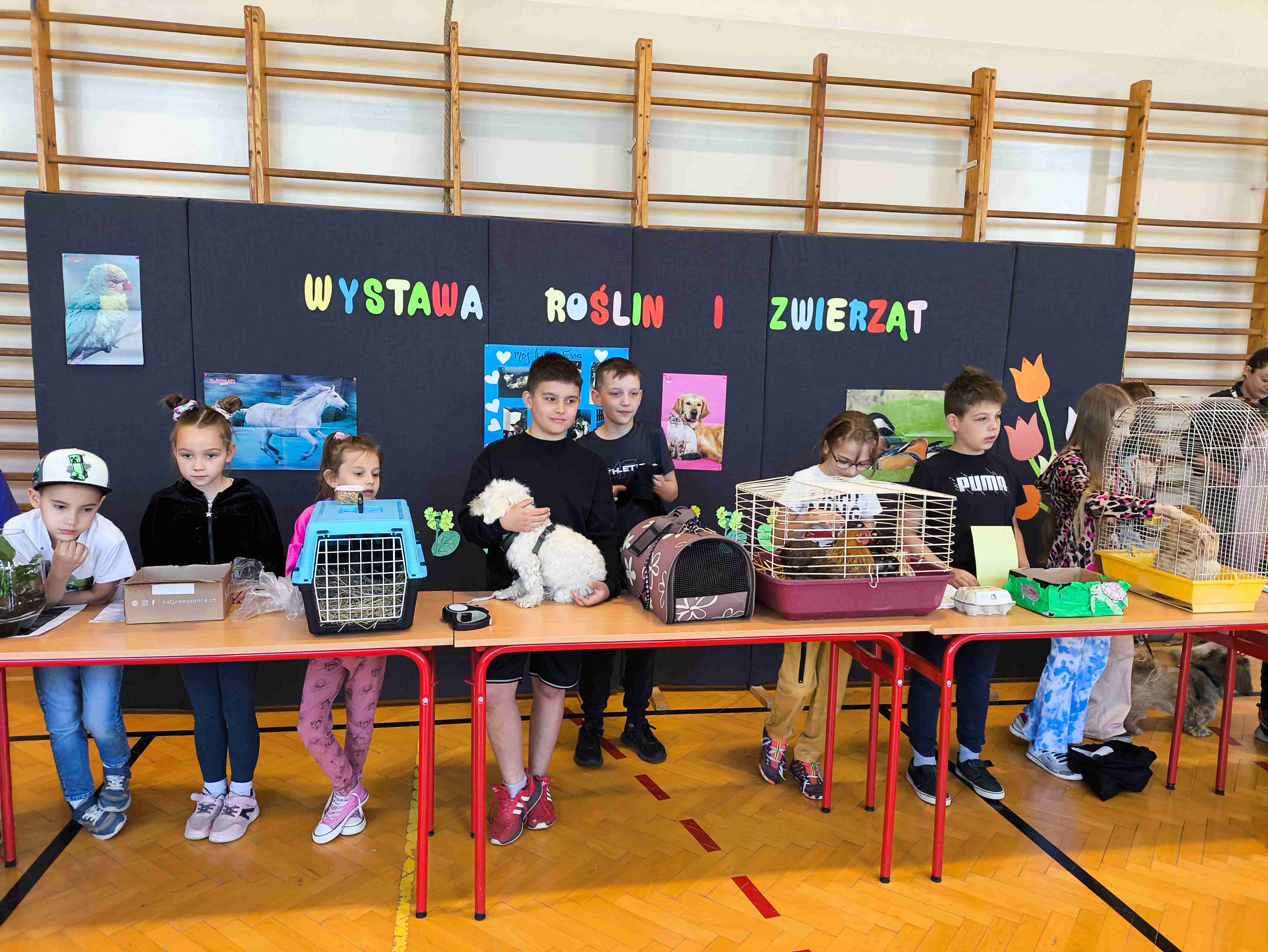 30 kwietnia 2025 roku odbyła się w naszej szkole XVI Wystawa Roślin i Zwierząt. Swoich ulubieńców zaprezentowali nam uczniowie klas 1-8. Każdy z opiekunów mógł pochwalić się swoim pupilem oraz przedstawić informacje na temat występowania i hodowli prezentowanego okazu. W wystawę zaangażowało się 35 uczniów. Wśród zwierząt znalazły się koty, psy, króliki, chomiki, żółwie a nawet kury. Uczniowie zwiedzający oraz przedszkolaki mogli obejrzeć zwierzęta i roślinki, zdobyć informacje na temat danego okazu, a nawet pobawić się za zgodą właścicieli ze zwierzątkami lub zrobić sobie zdjęcie. Zadaniem uczestników było przedstawienie i krótkie zaprezentowanie swojego zwierzątka lub roślinki.