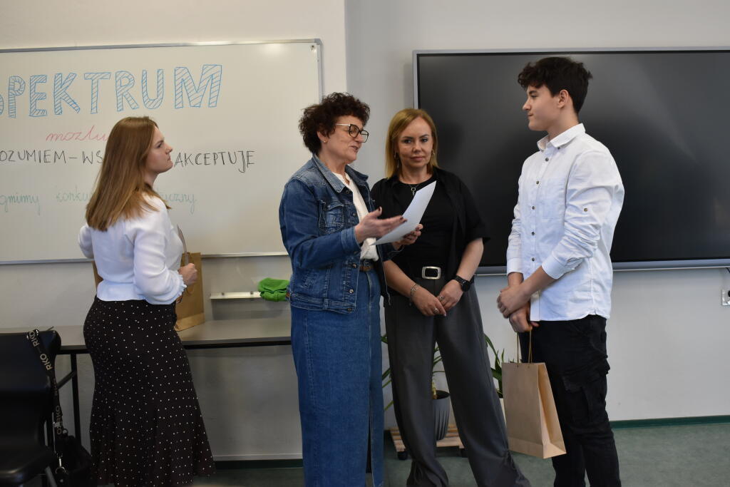 Z dumą informujemy, że uczniowie klasy ósmej godnie reprezentowali naszą szkołę podczas VII Gminnego Konkursu Profilaktycznego „Spektrum możliwości – rozumiem, wspieram i akceptuję”, który odbył się 3 kwietnia 2025 r. w PSP w Komprachcicach.