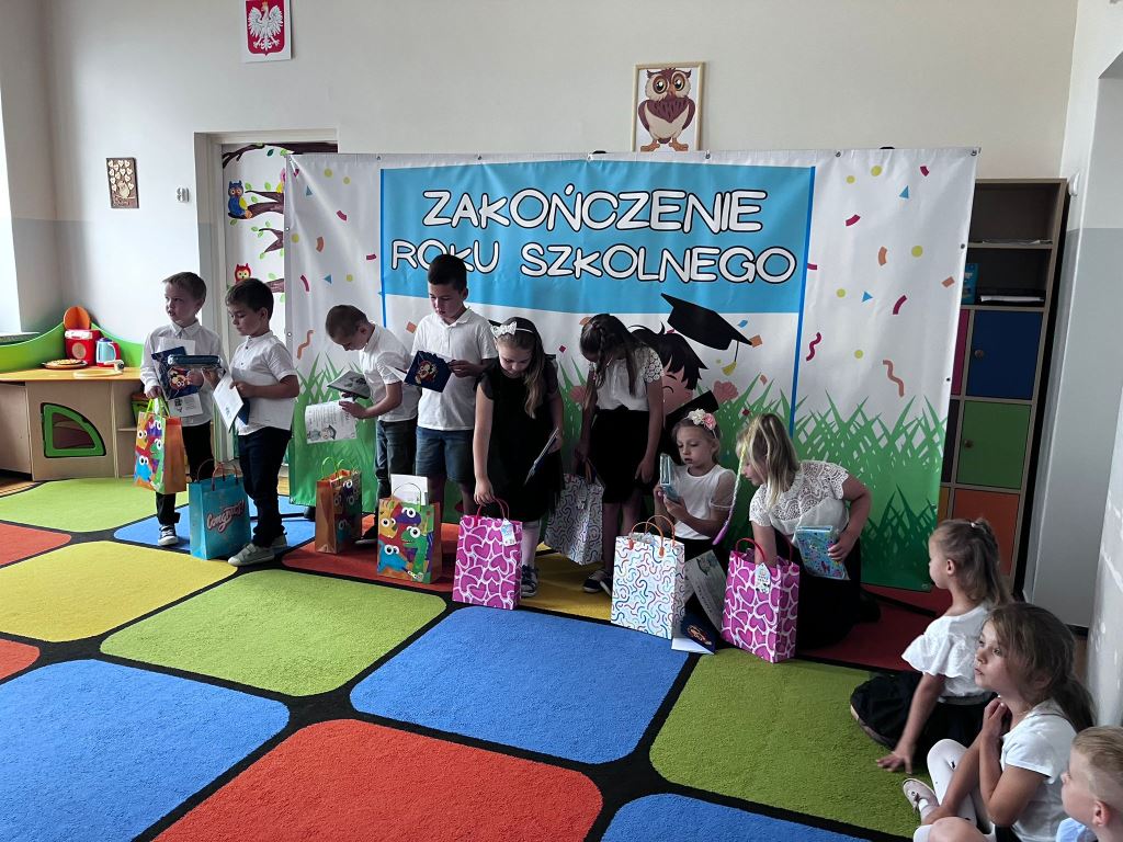 W ostatni piątek miesiąca naszedł wyjątkowy dzień – zakończenie roku w przedszkolu. Dzieci, które od września zaczną naukę w szkole, przygotowały krótki występ. Następnie przedszkolaki otrzymały dyplomy oraz prezenty przydatne do szkoły.
